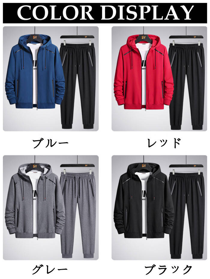 春秋新作 セットアップ上下 ジップアップパーカー スウェットパンツ スポーツウェア 男性用 4colors 黒色 赤色 藍色 灰色