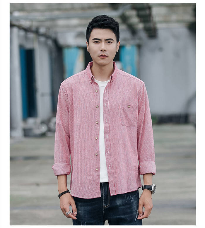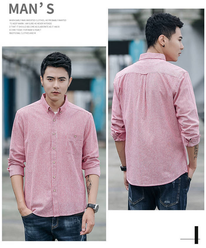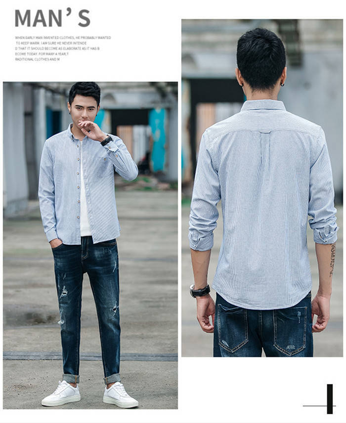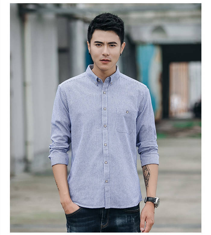 長袖 ストライプ柄 カジュアル ボタン