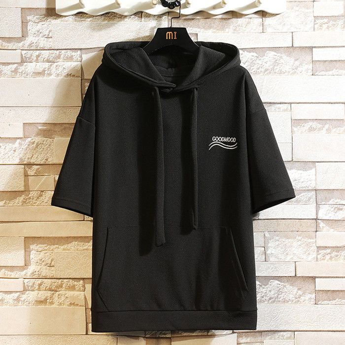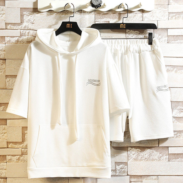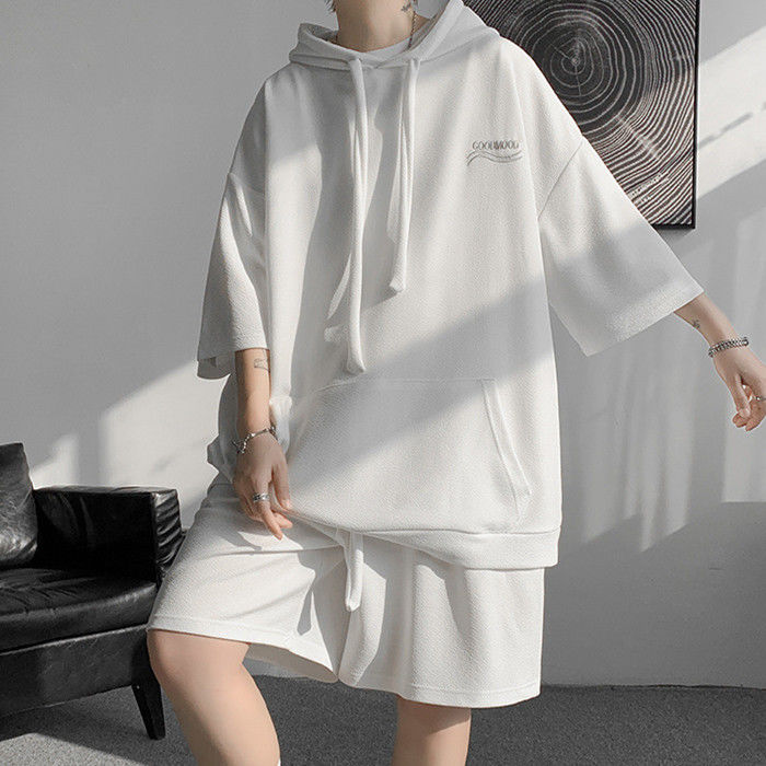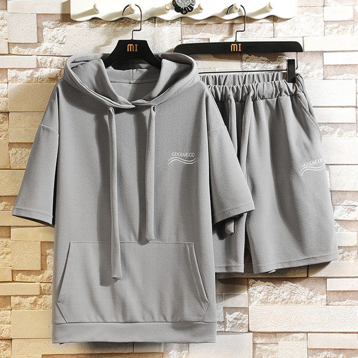 サマーセット 2点上下セット 英語柄 ランニングウェア ハーフパンツ 男性 半袖 パーカー 3色 灰 白 黒