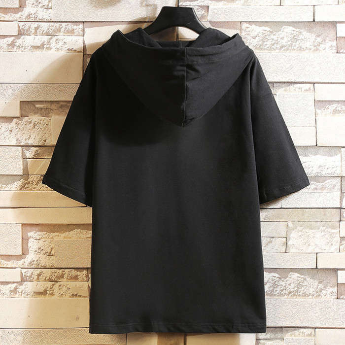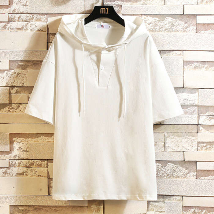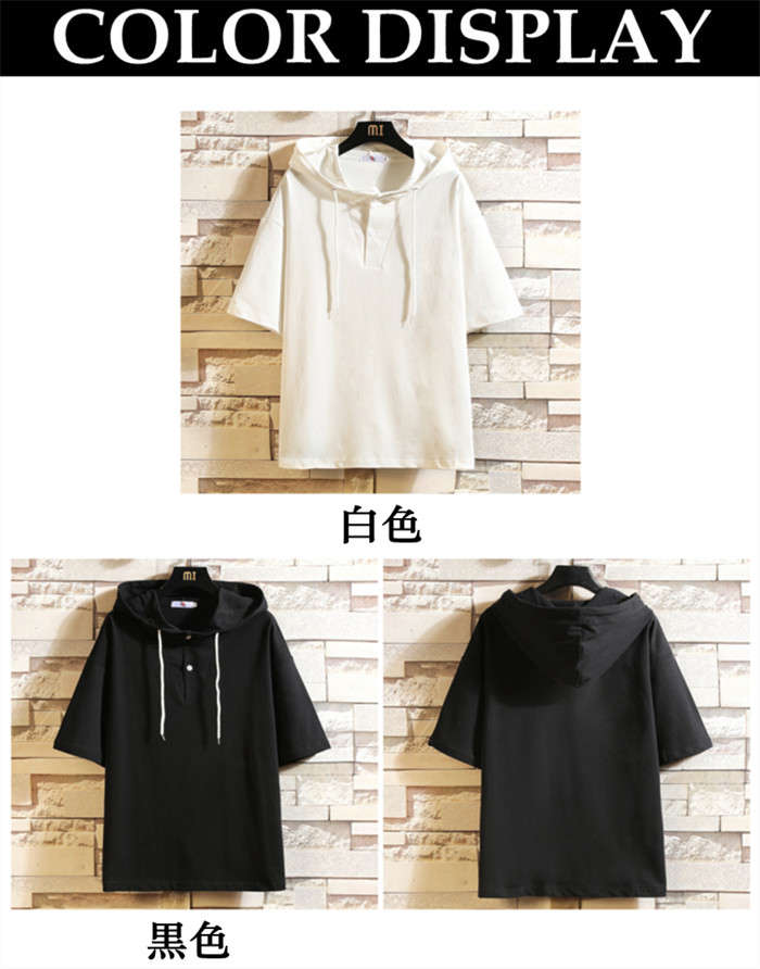 夏新作 フード付きTシャツ 無地 半袖パーカー ゆったり 2colors 白色 黒色メンズファッション トップス パーカー