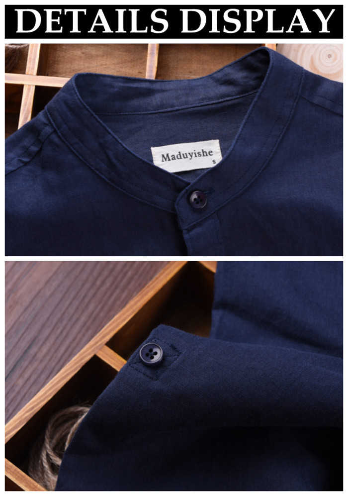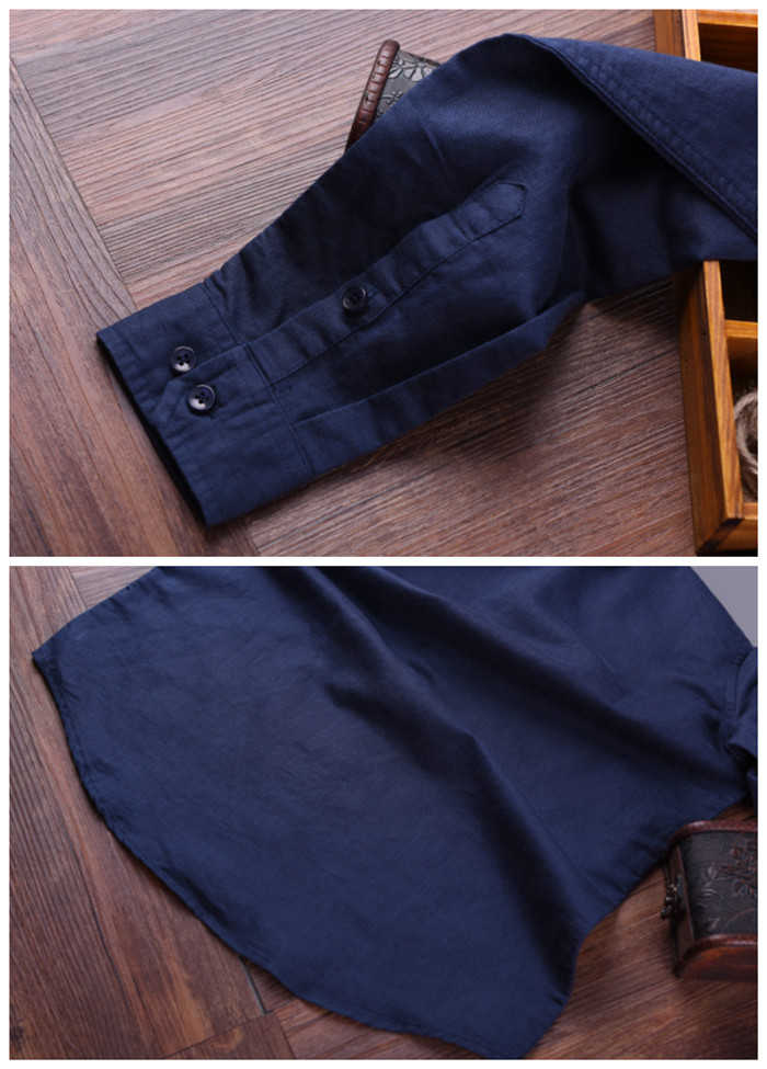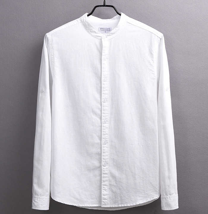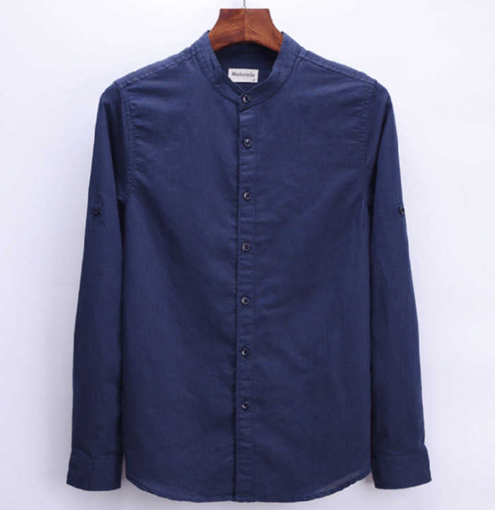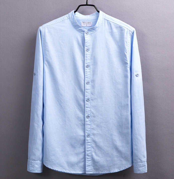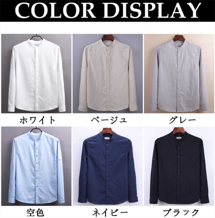 綿麻 長袖シャツ 立ち襟 カジュアル 男性用 トップス 春服 6色 空色 白色 灰色 黒色メンズファッション トップス カジュアルシャツ