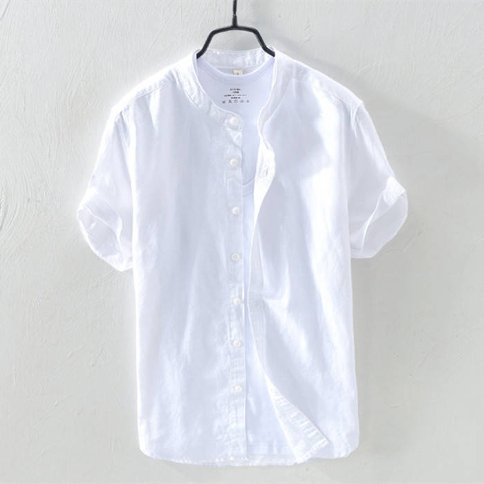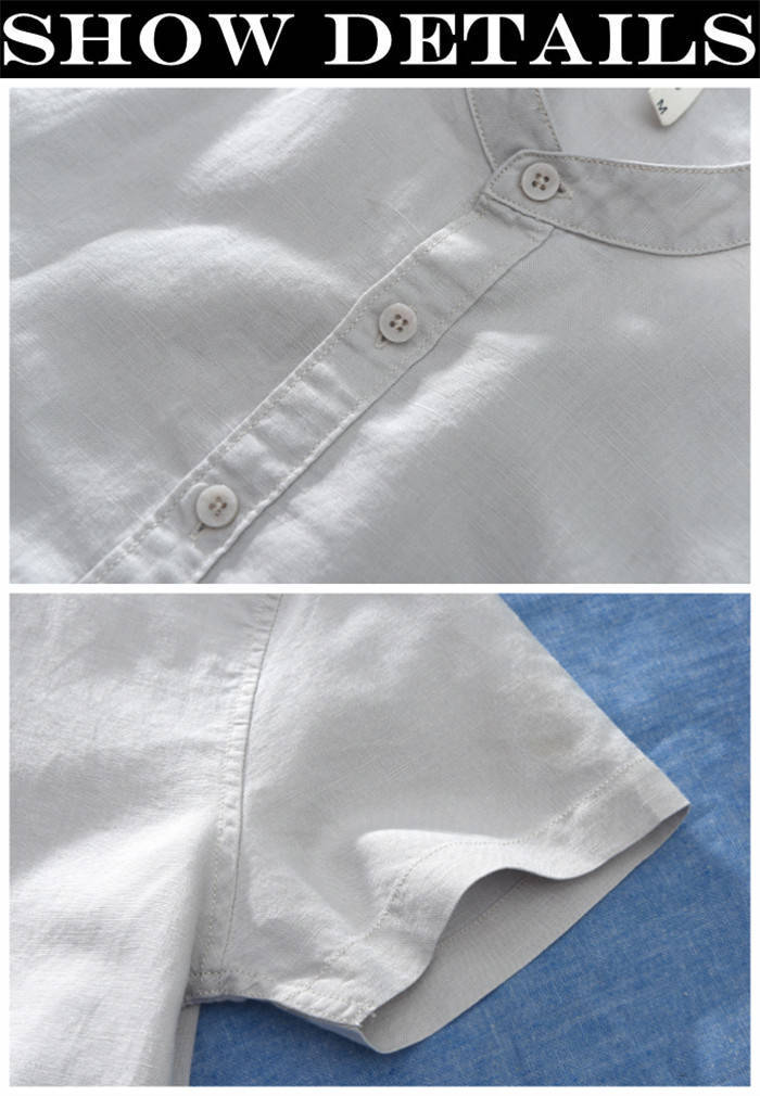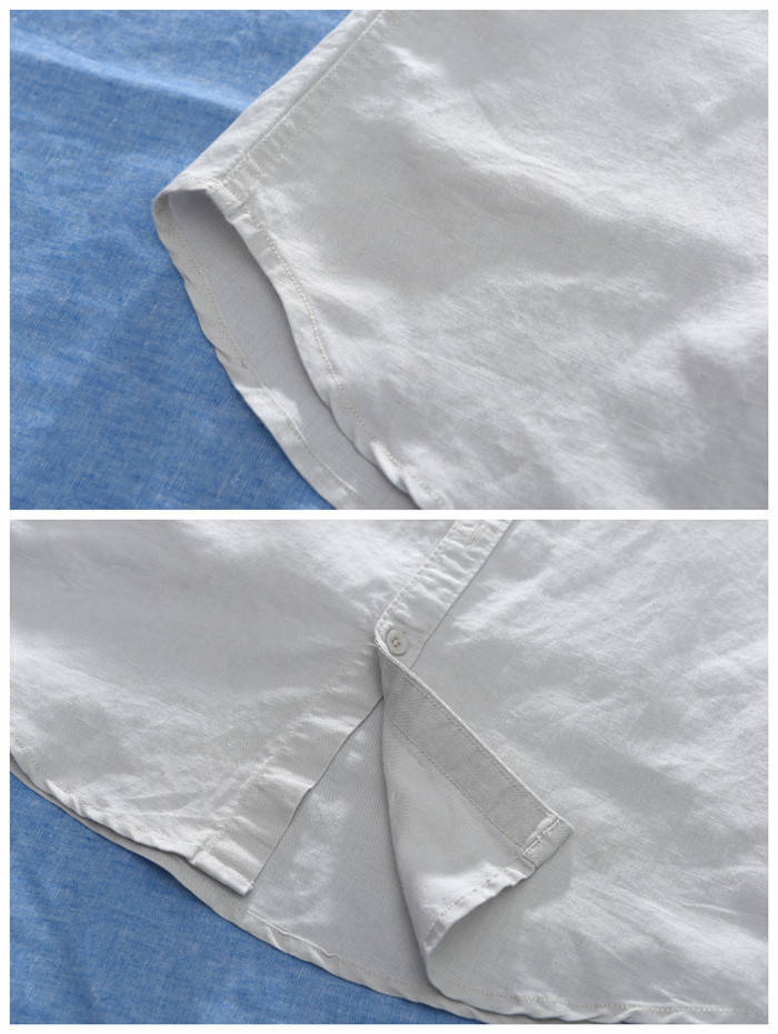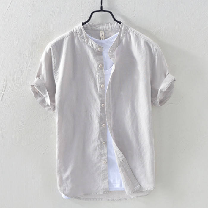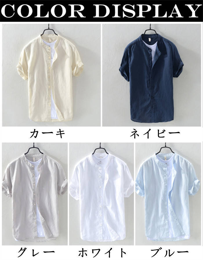 綿麻 半袖シャツ 立ち襟 カジュアル