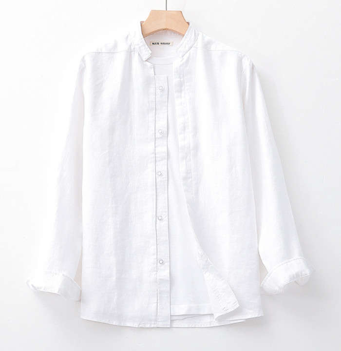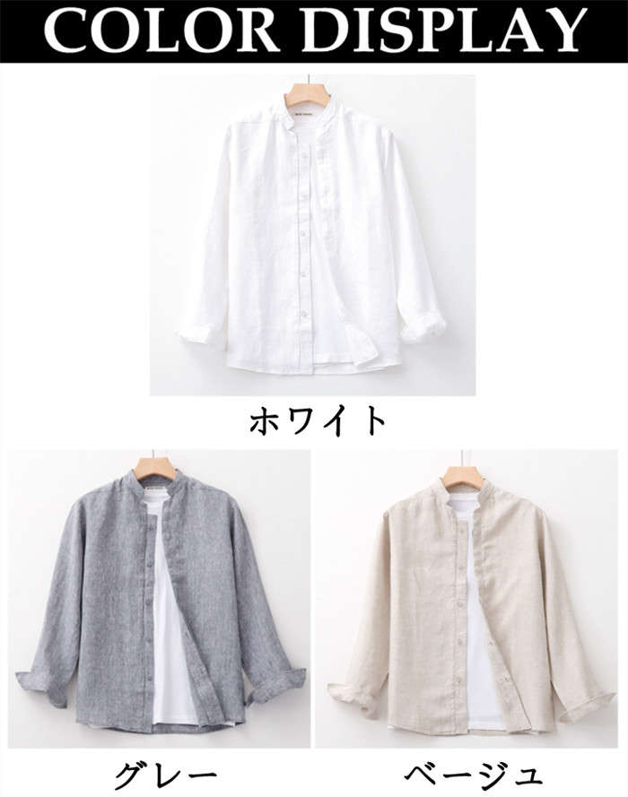綿麻 長袖シャツ 立ち襟 カジュアル 男性用 トップス 春服 3色 白色 灰色メンズファッション トップス カジュアルシャツ
