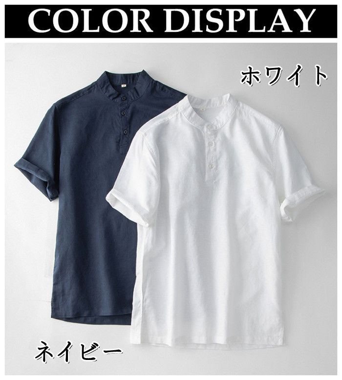 綿麻 接触冷感 プルオーバー 半袖シャ