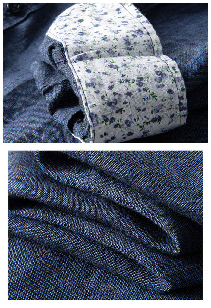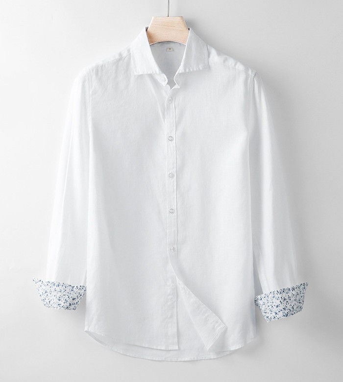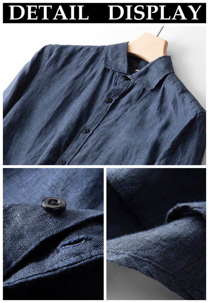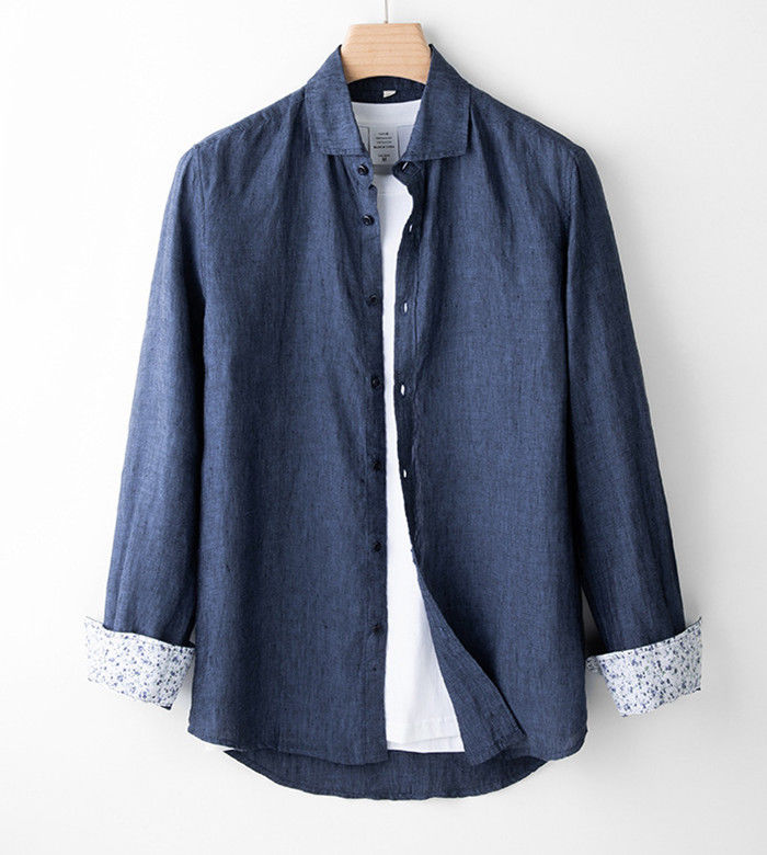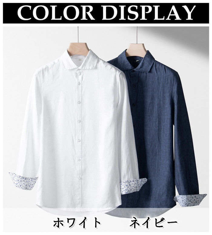 亜麻100% 長袖シャツ カジュアル