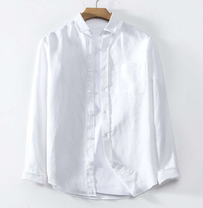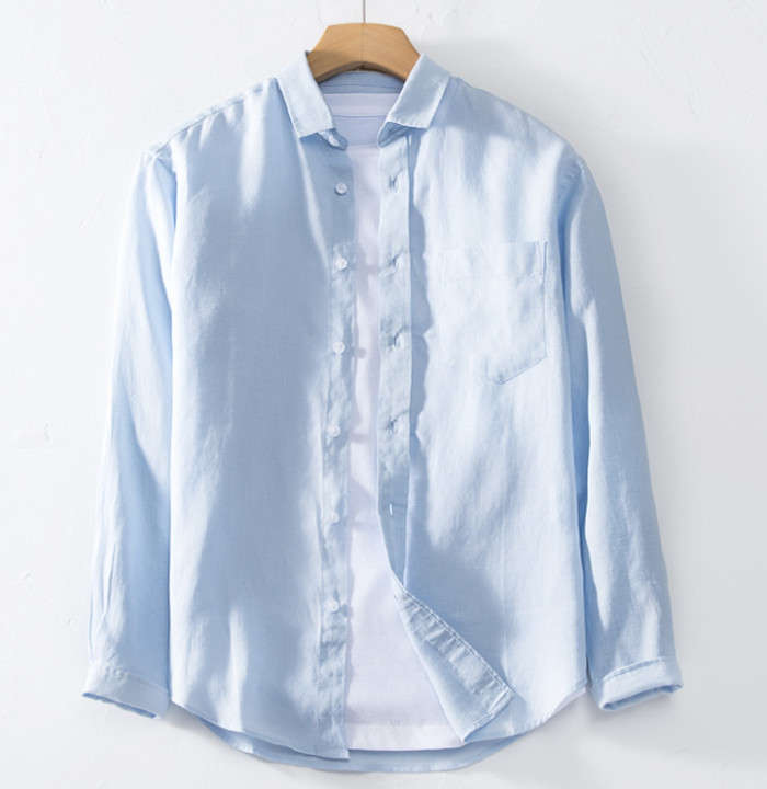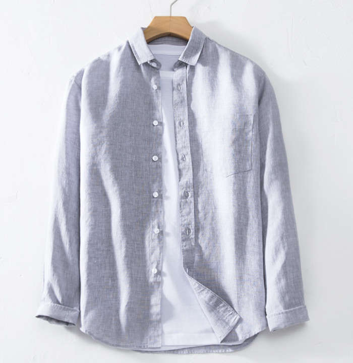 綿麻 長袖シャツ カジュアル 男性用 トップス 3色 白色 灰色 青色メンズファッション トップス カジュアルシャツ