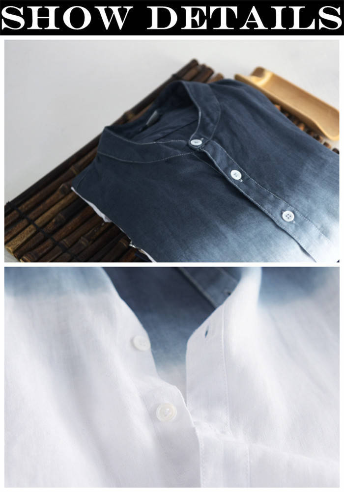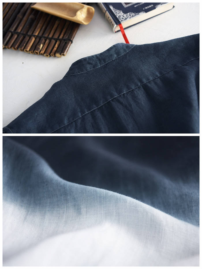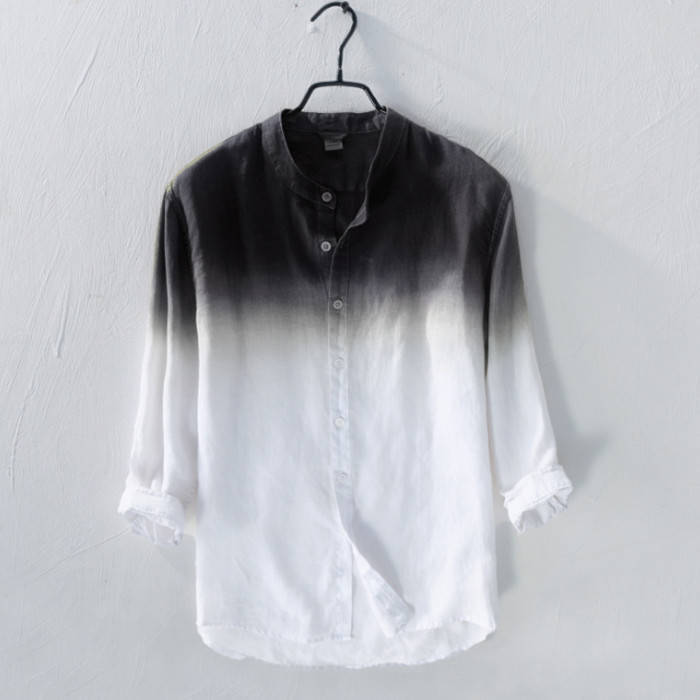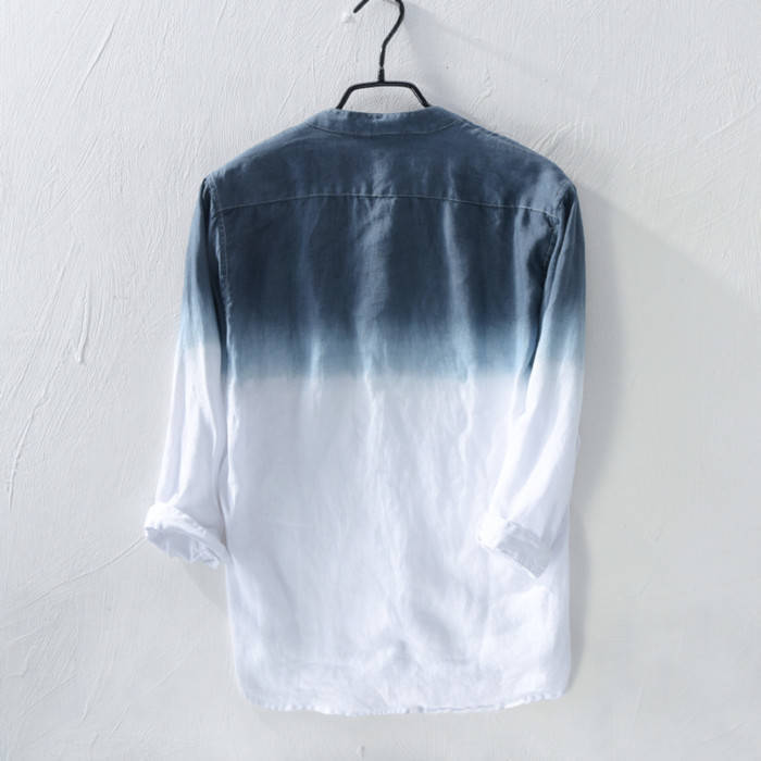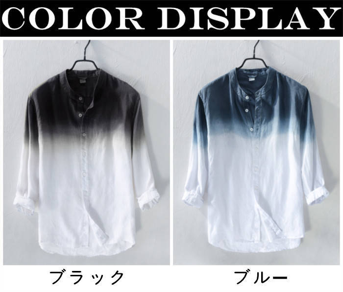 綿麻 七分袖シャツ 立ち襟 グラデーシ