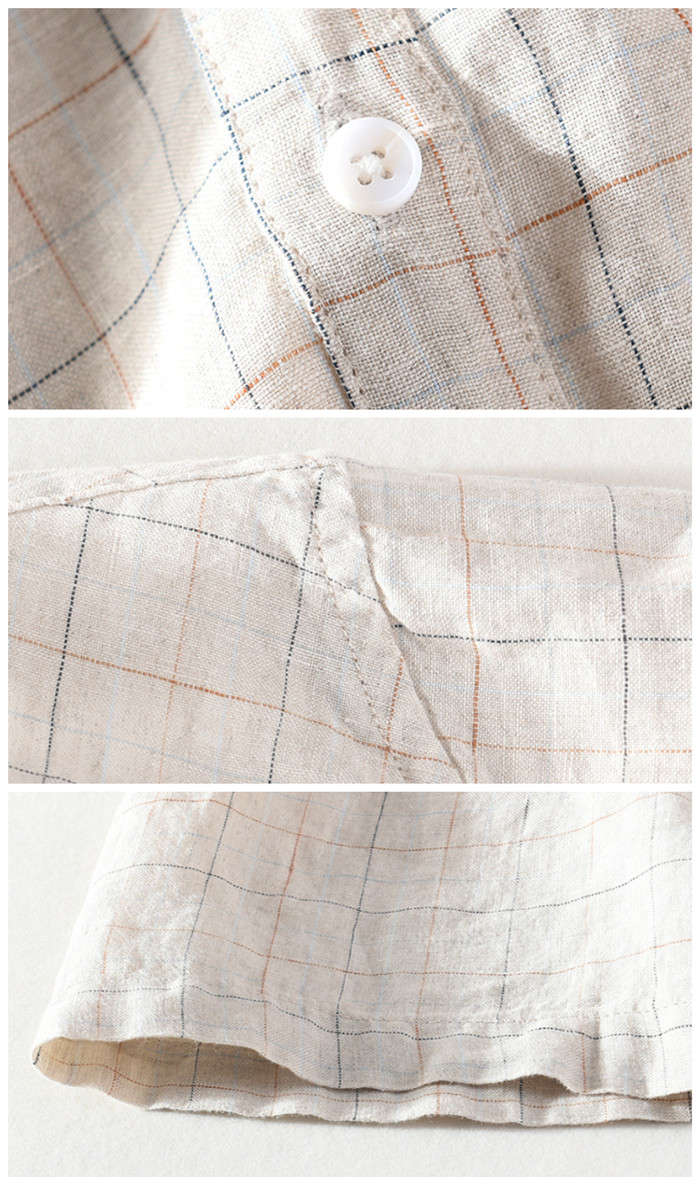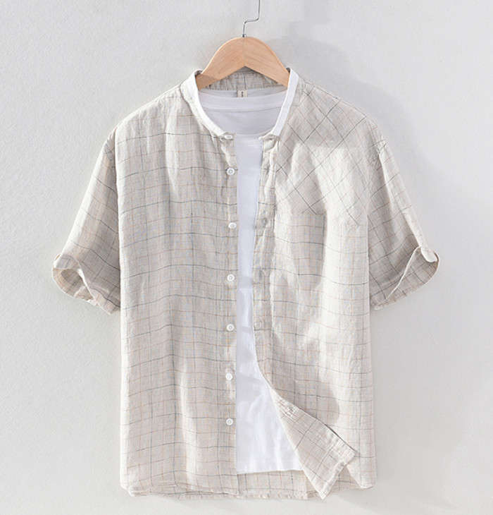 綿麻 半袖シャツ スタンドカラー カジ