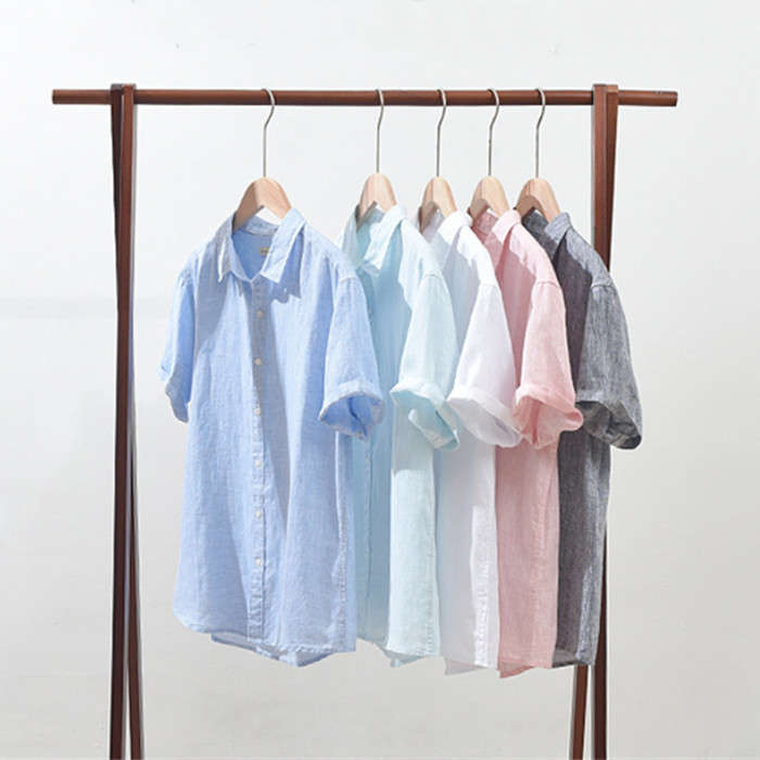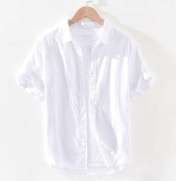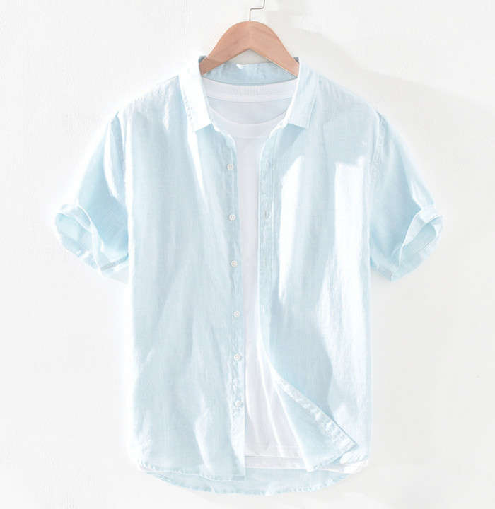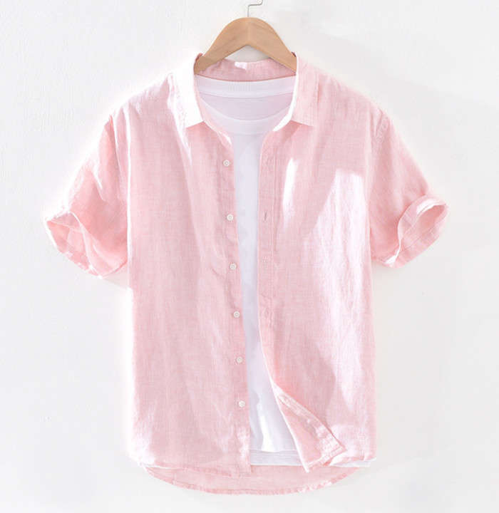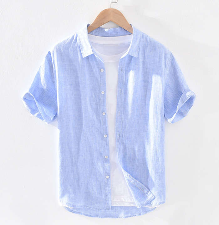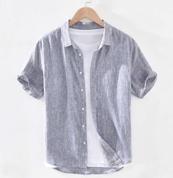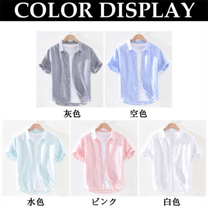 綿麻 無地 半袖シャツ カジュアル 男