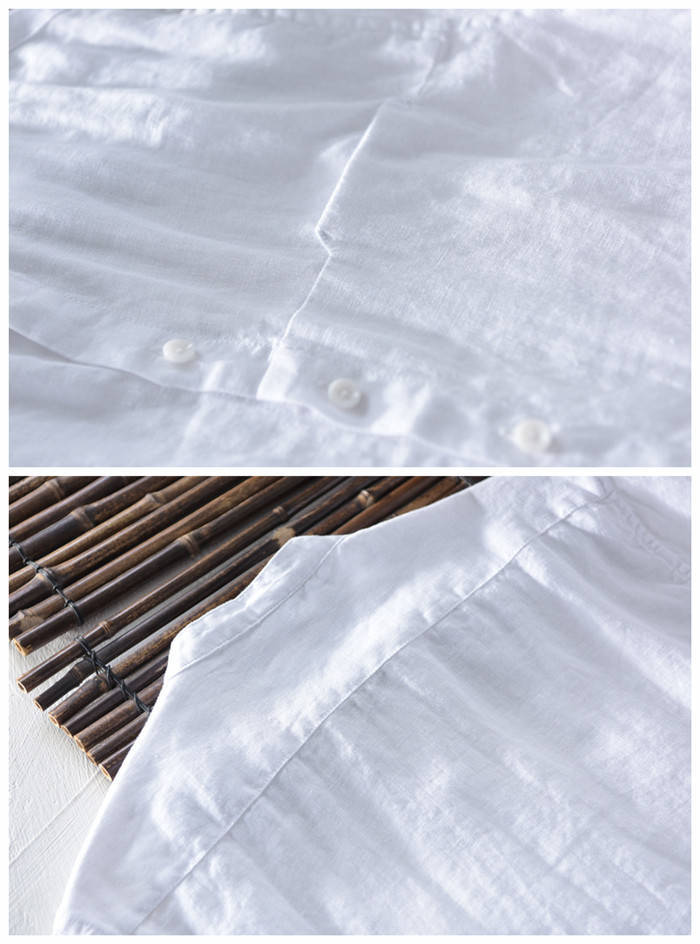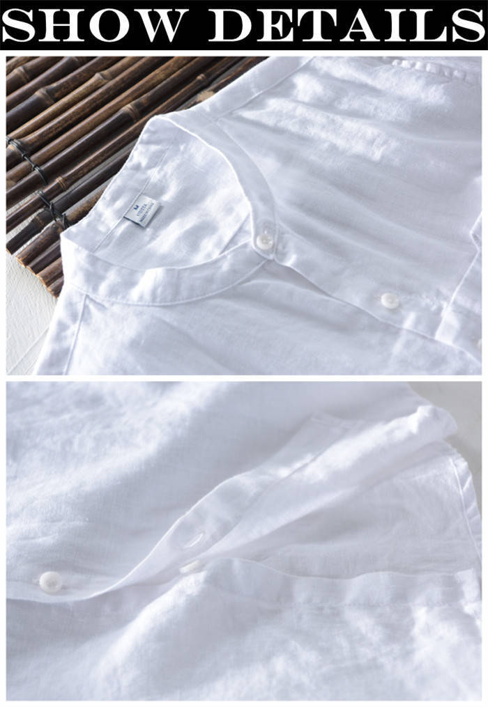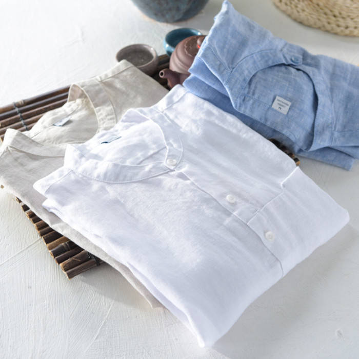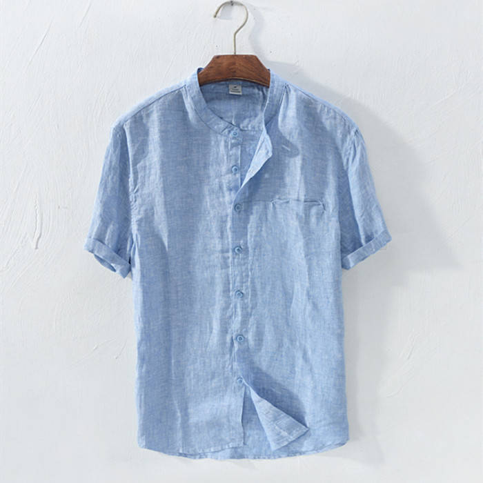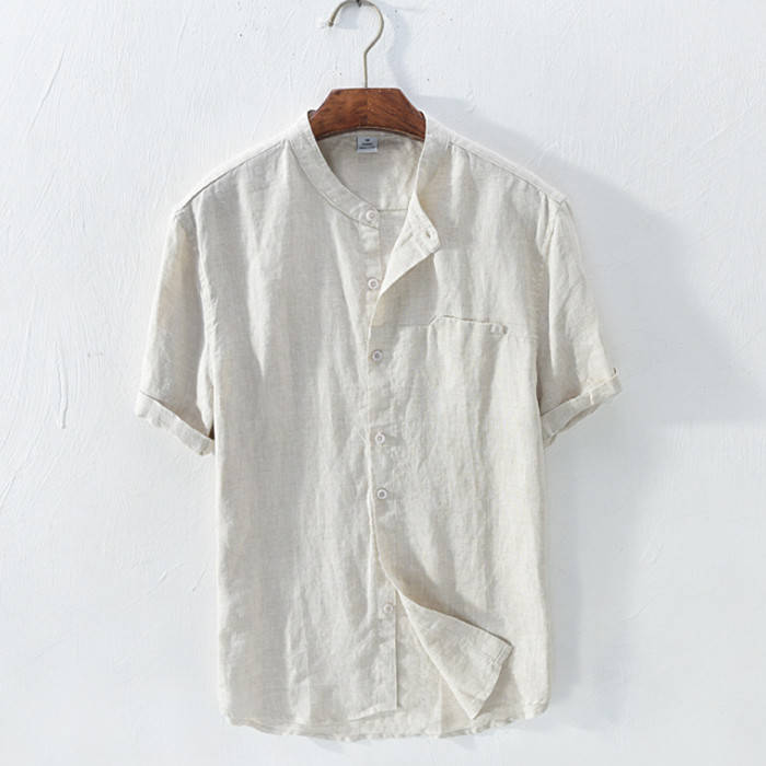 綿麻 半袖シャツ 立ち襟 カジュアル