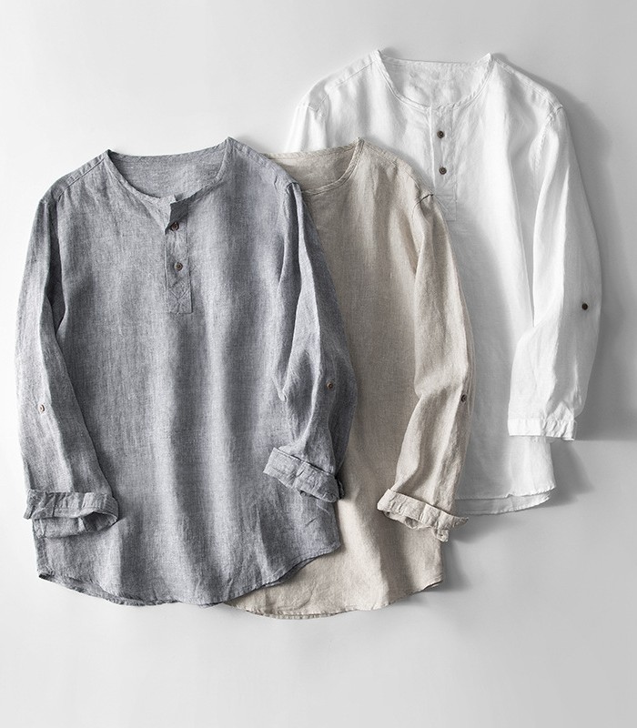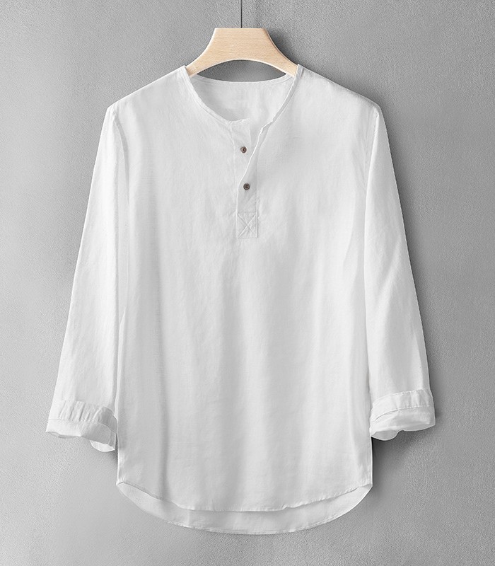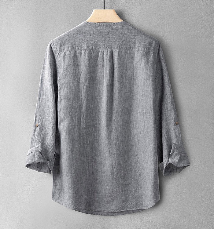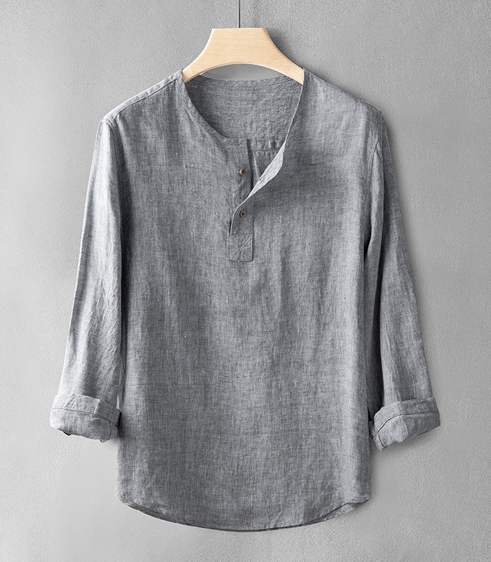 亜麻100% カプリシャツ メンズ 長