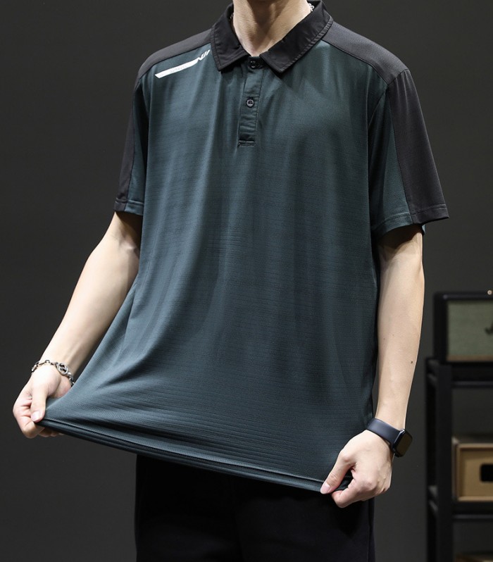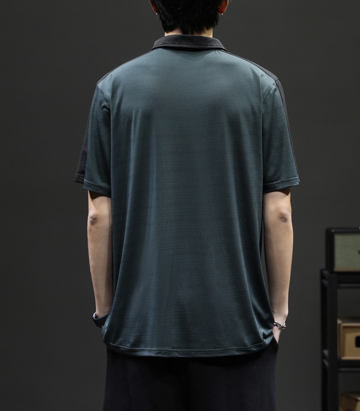 半袖ポロシャツ 切り替え柄 ジャージポロシャツ 夏物 通気 涼しい トップス ブラック グリーンメンズファッション トップス ポロシャツ