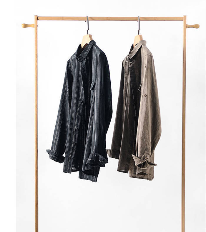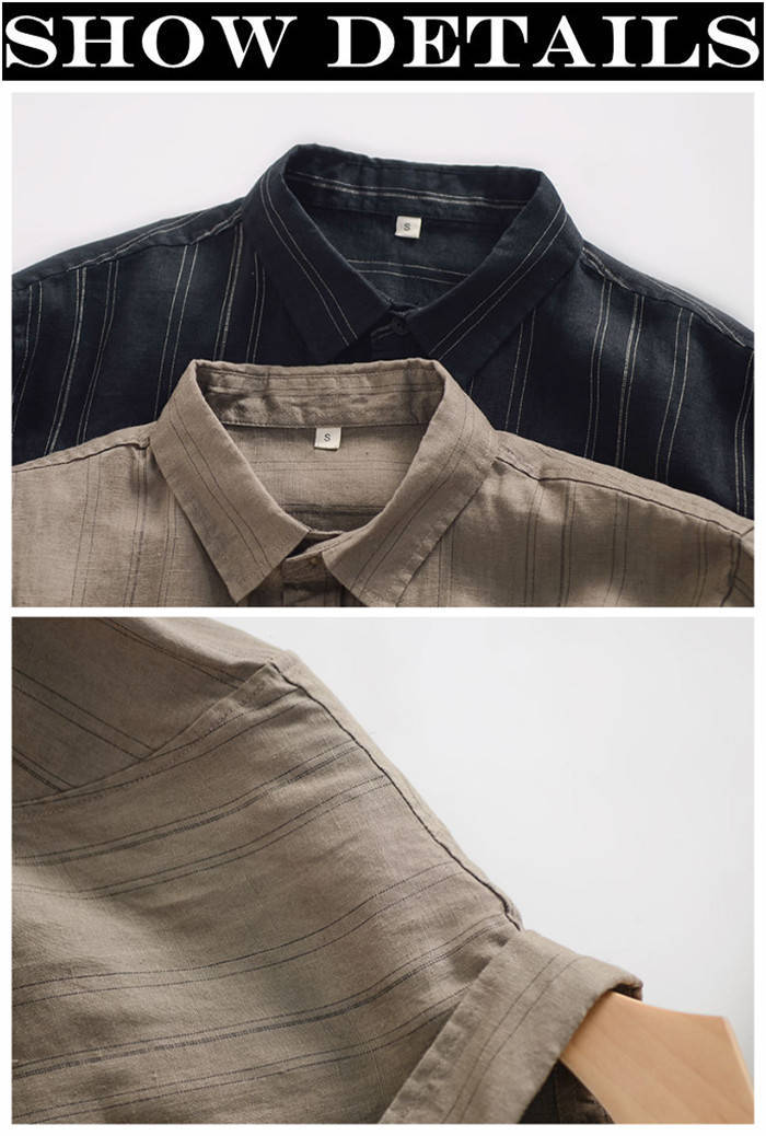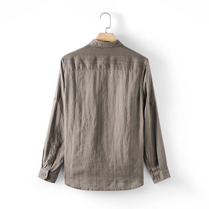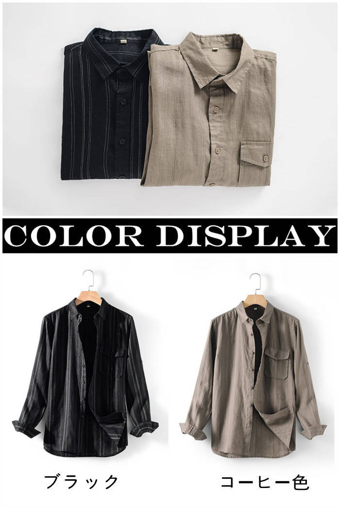 綿麻 長袖シャツ ストライプ柄 カジュ