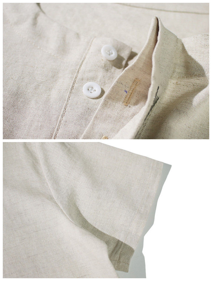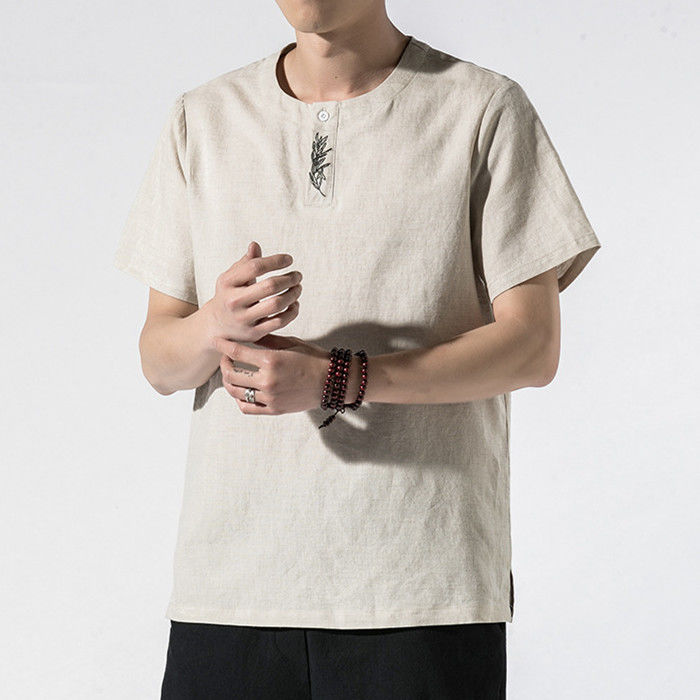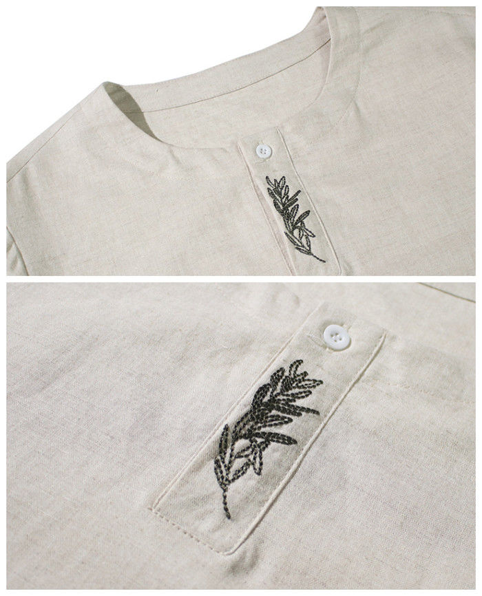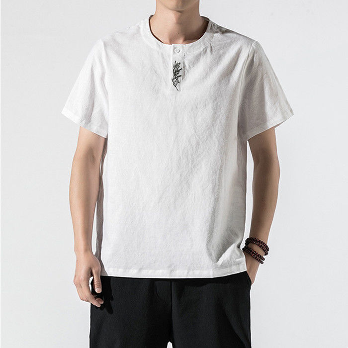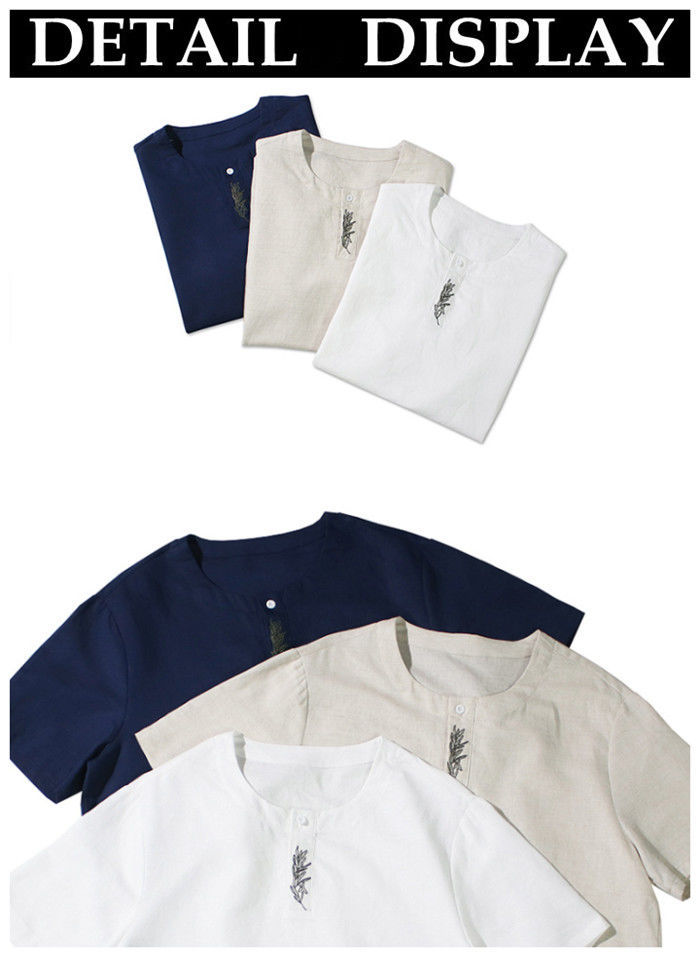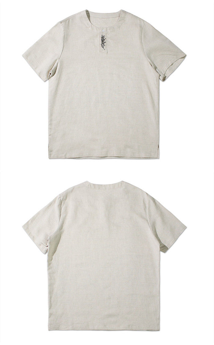 綿麻 刺繍 半袖Tシャツ カジュアル
