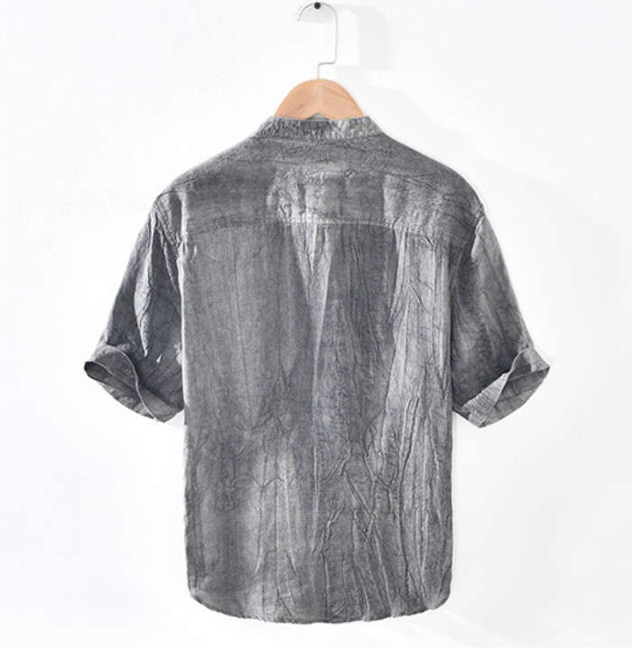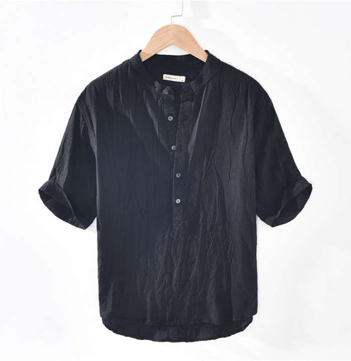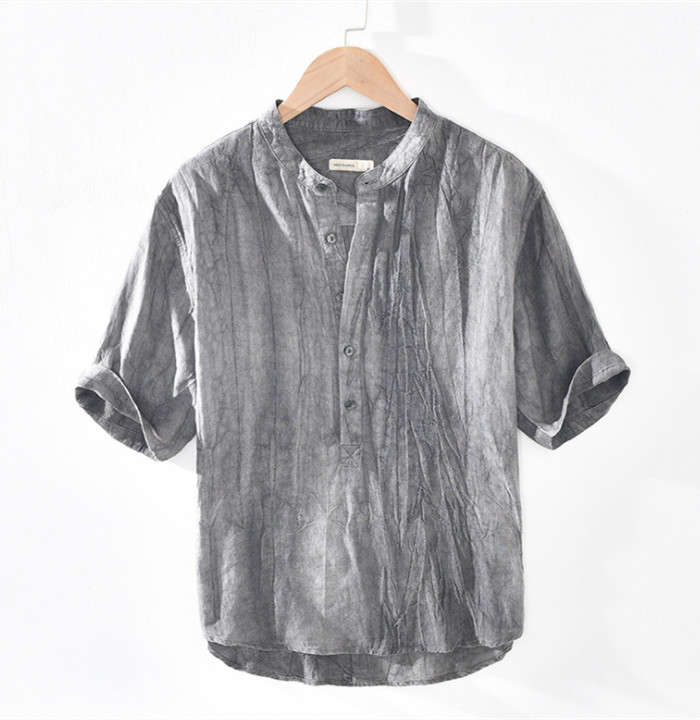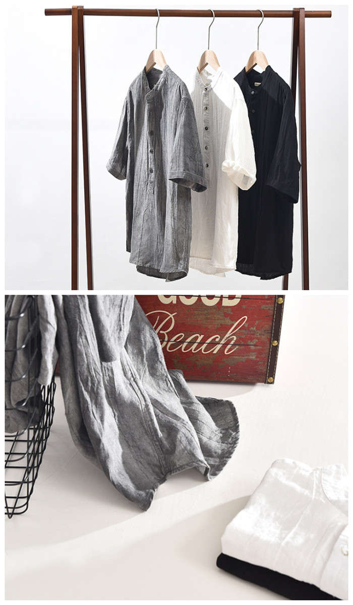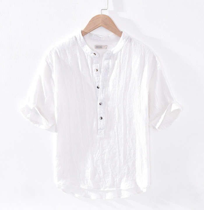 亜麻 半袖シャツ 五分袖 ヘンリーネッ