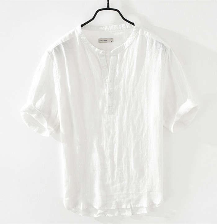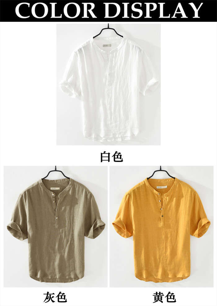 亜麻 半袖シャツ 五分袖 ヘンリーネッ