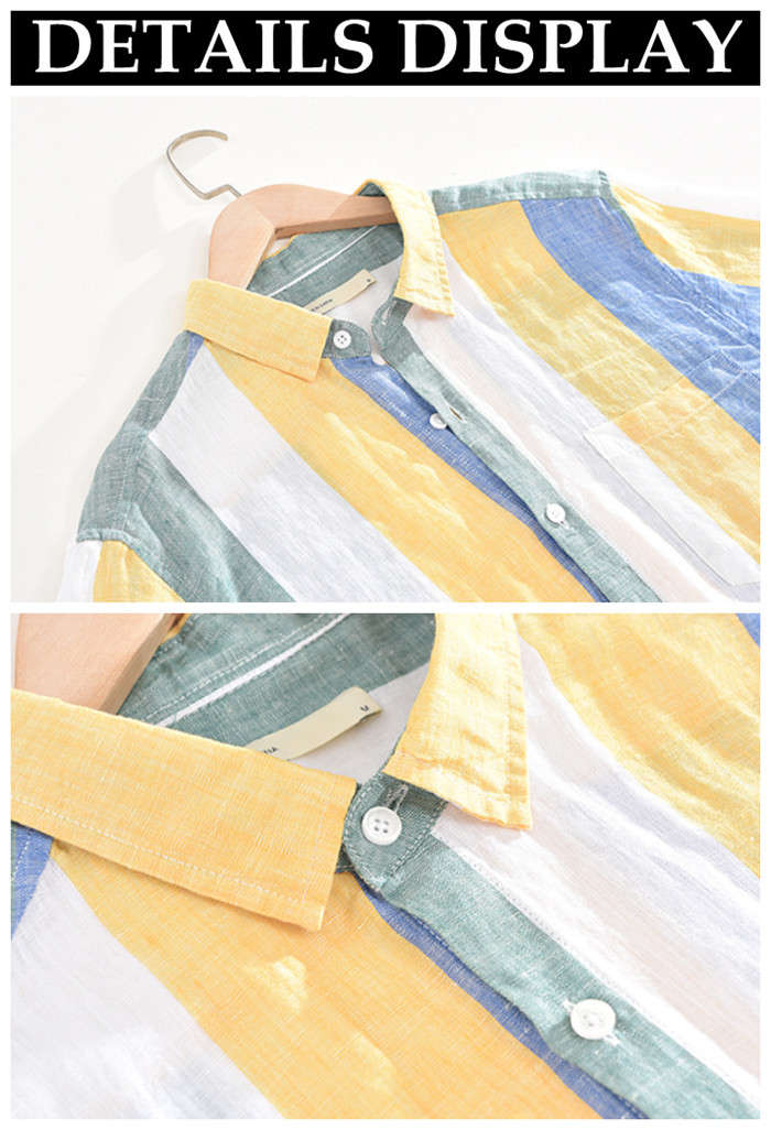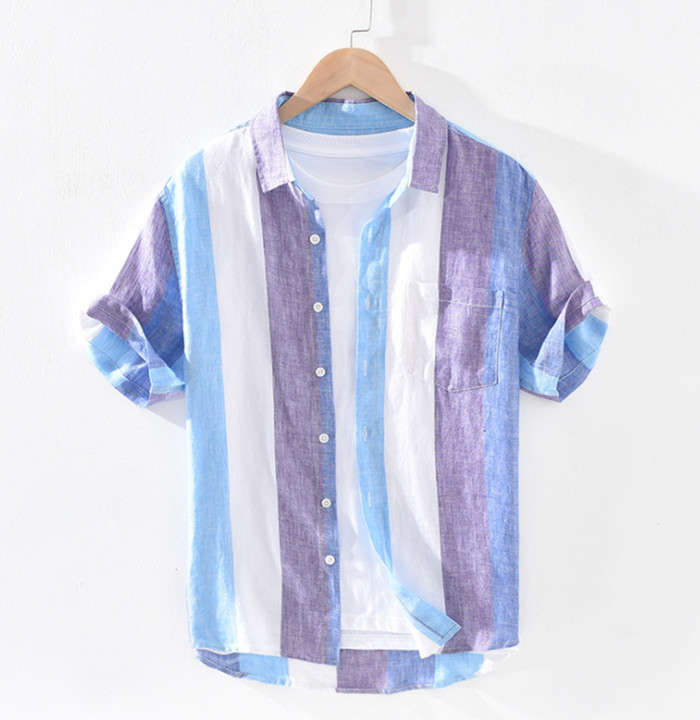 麻 半袖シャツ ゆったり ストライプ柄