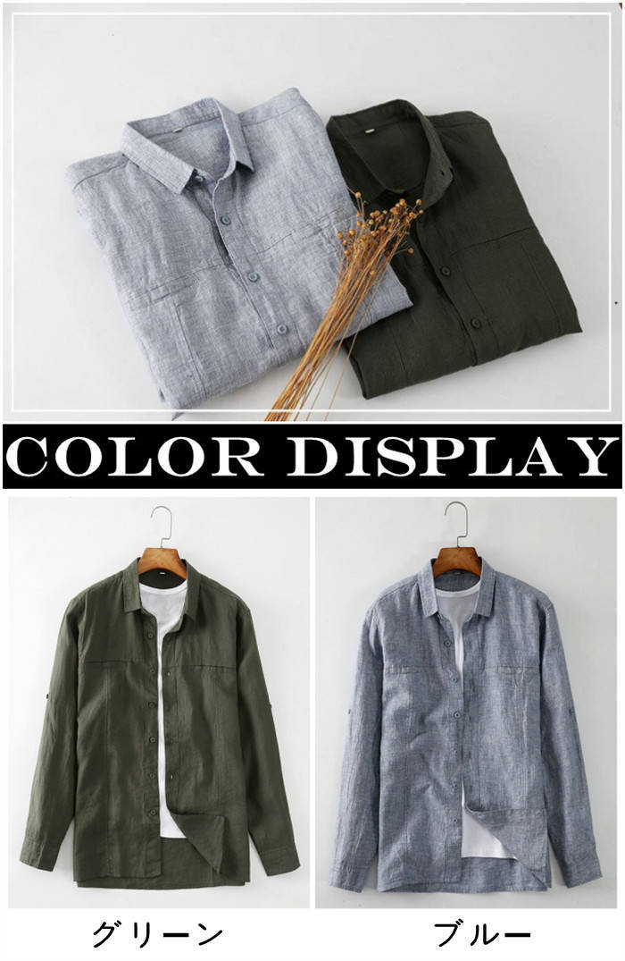 シャツ リネンシャツ 長袖シャツ メン