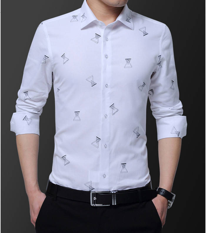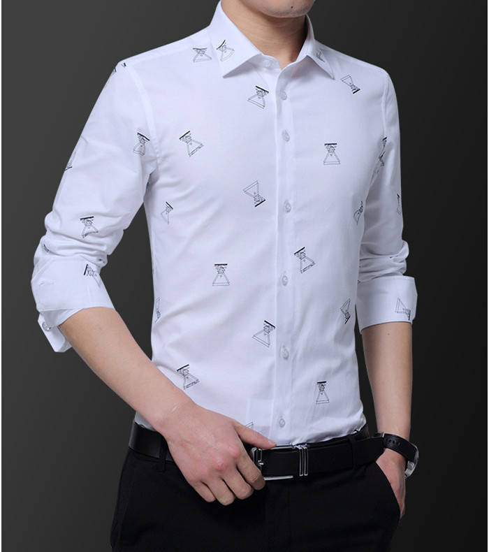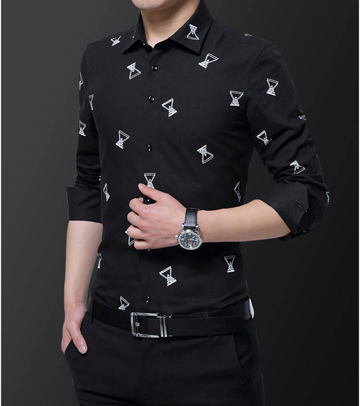 長袖 プリント柄 カジュアルシャツ コ