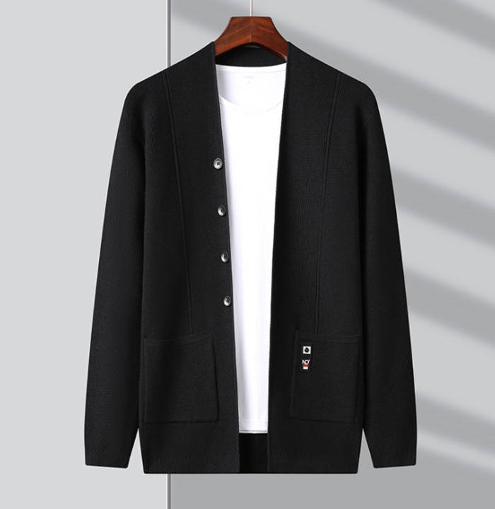 カーディガン Vネック ニット ショートコート アウター 秋冬新作 4色 黒色 灰色メンズファッション トップス カーディガン