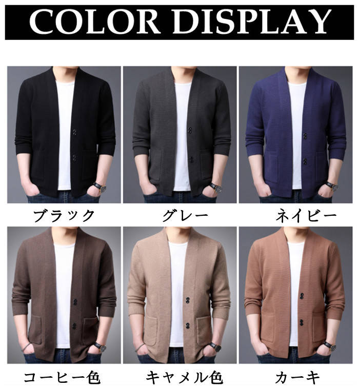 カーディガン Vネック ニット ショートコート アウター 秋冬新作 6色 黒色 灰色メンズファッション トップス カーディガン
