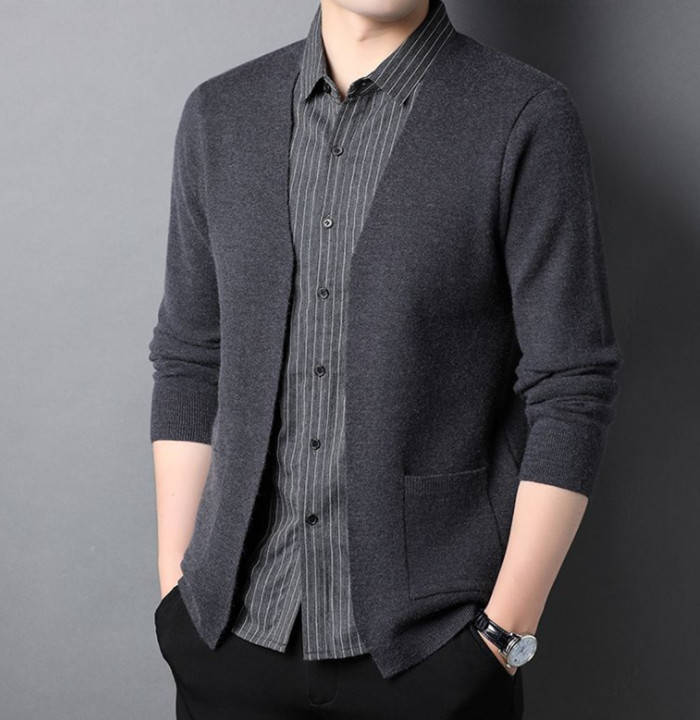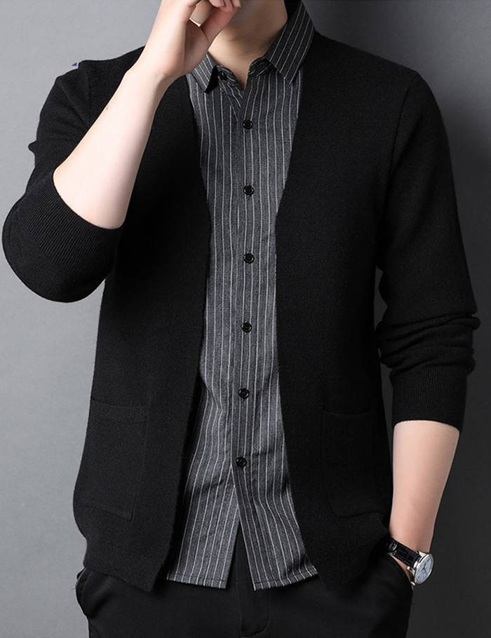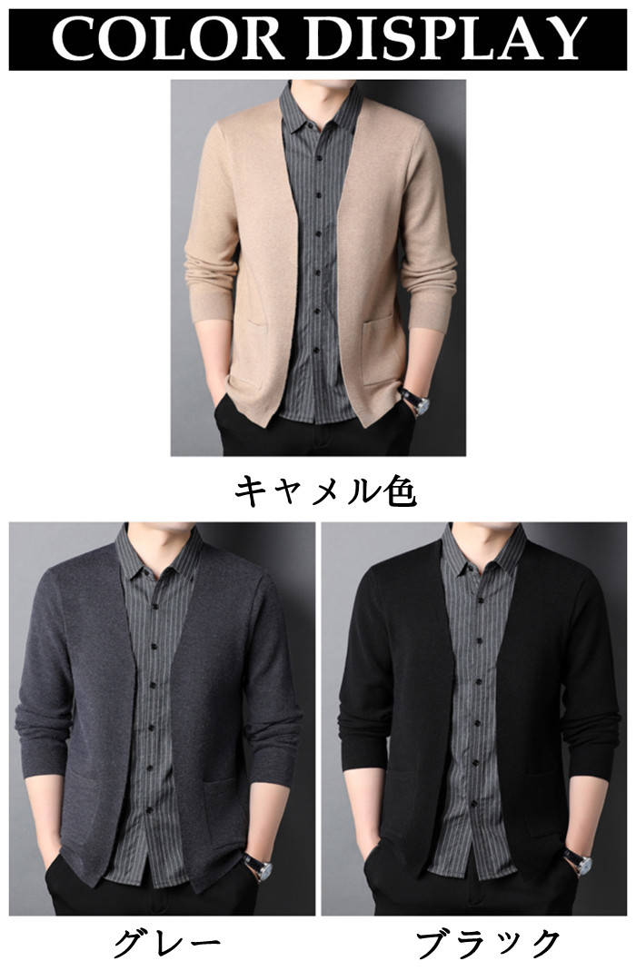 カーディガン Vネック ニット ショートコート アウター 秋冬新作 3色 黒色 灰色メンズファッション トップス カーディガン
