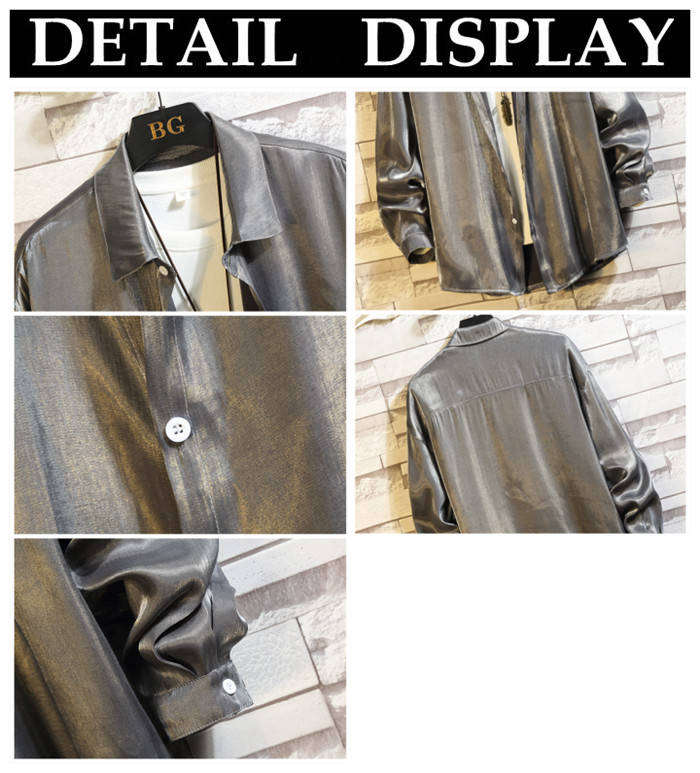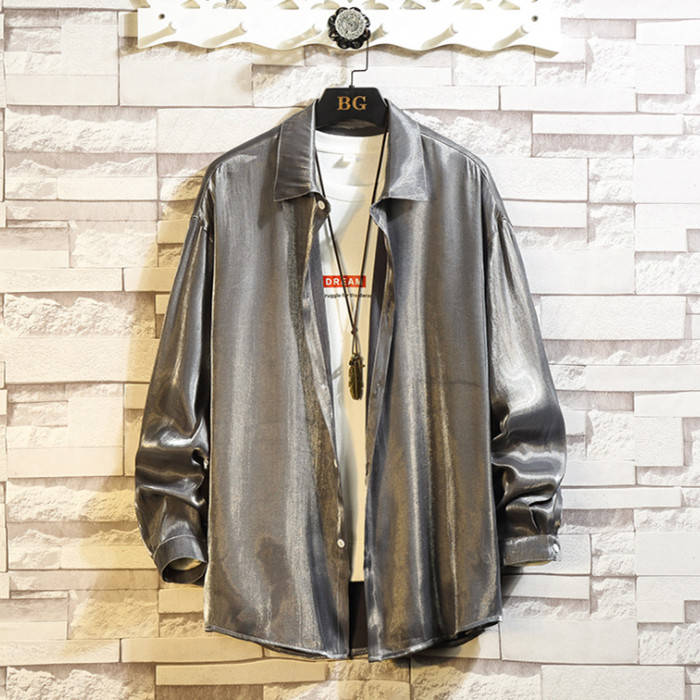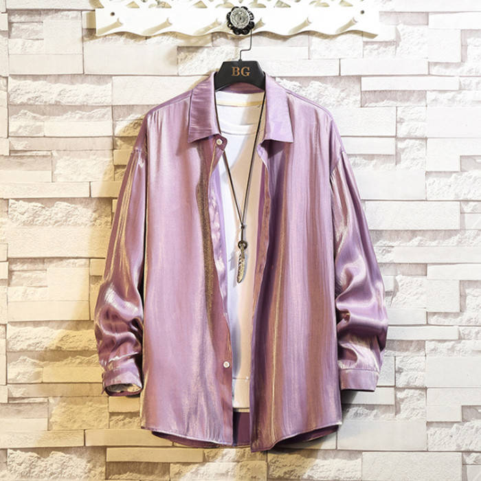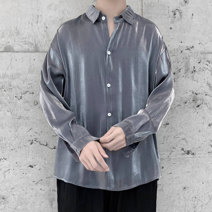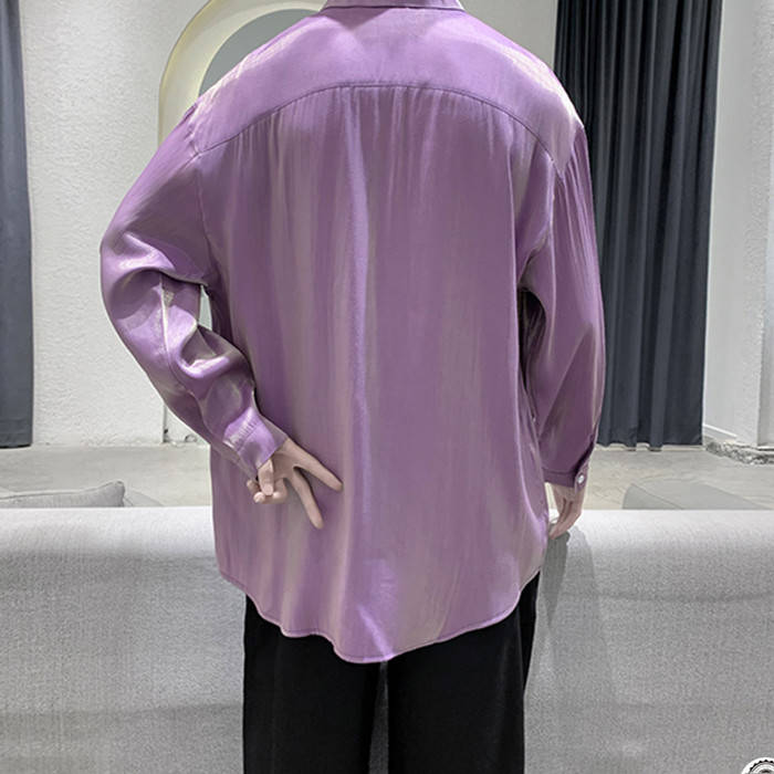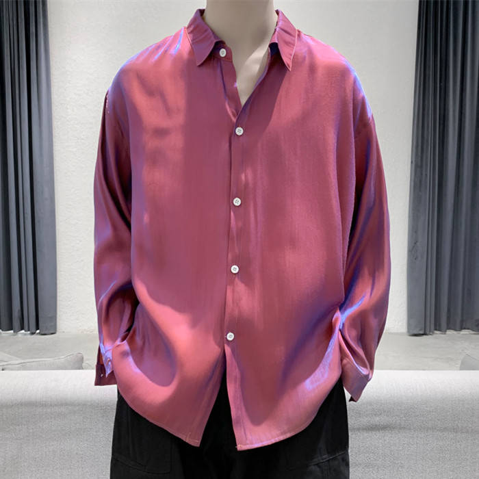 滑らか 艶々 長袖シャツ 長袖 カジュアル お洒落 トップス 男性用 4色 紅藤色 灰色メンズファッション トップス カジュアルシャツ