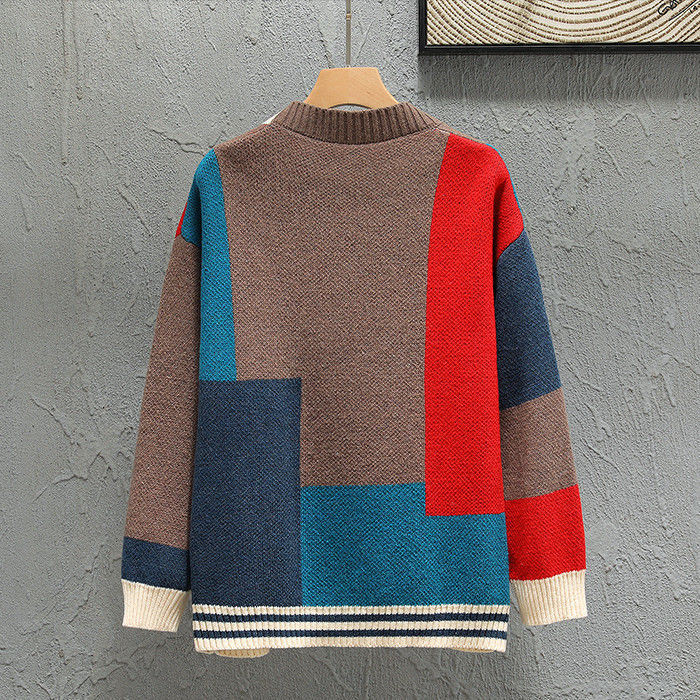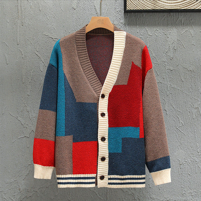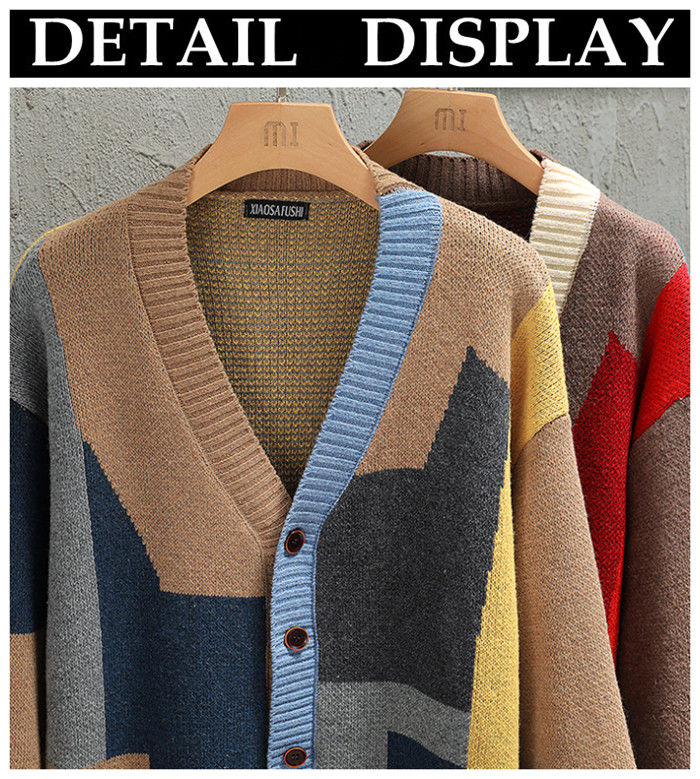 大きいサイズ カーデ Vネック カーディガン 幾何柄 ニット アウター 秋冬新作 2色 赤色メンズファッション トップス カーディガン