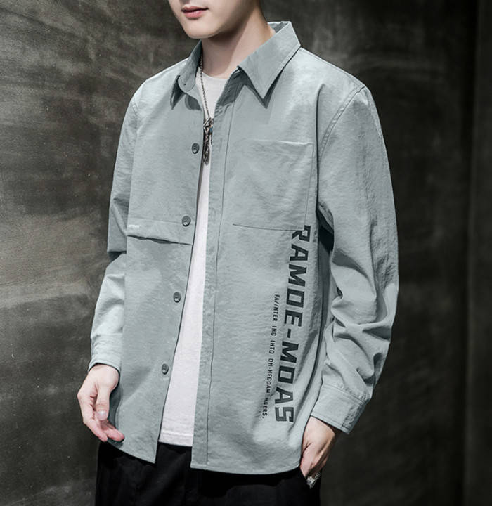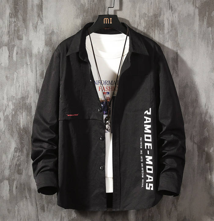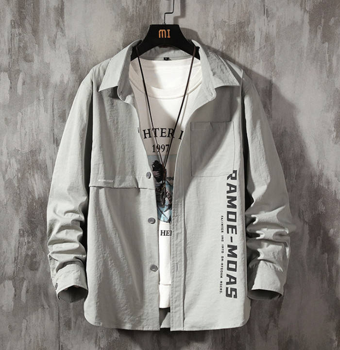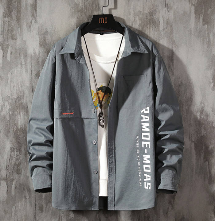 シャツジャケット 長袖 カジュアル ワークシャツ 男性用 トップス 3色 黒色 御召御納戸 湊鼠メンズファッション トップス カジュアルシャツ