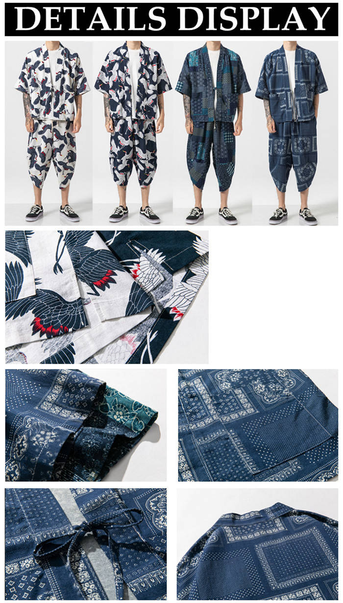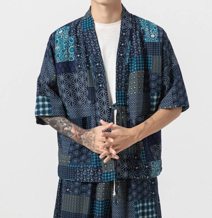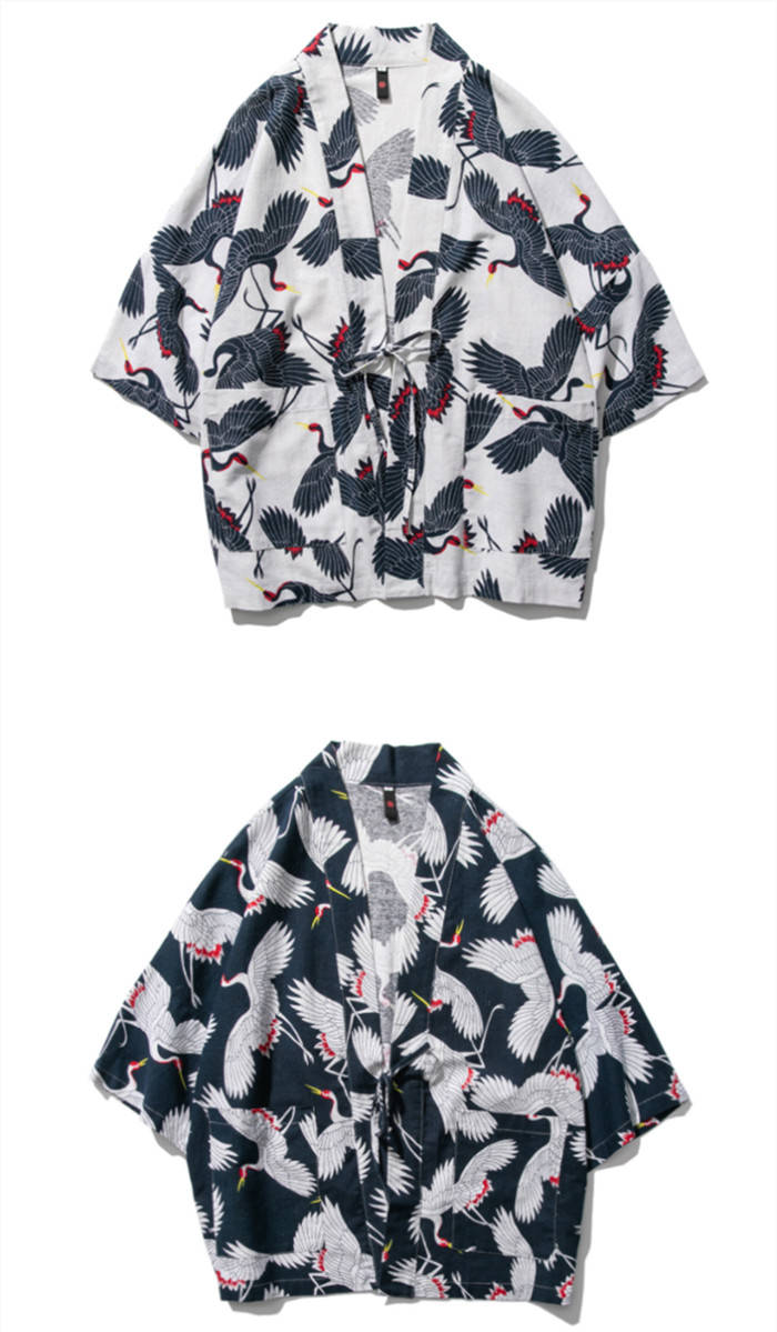 カーディガン 和風 和服 ゆったり 総柄 トップス アウター 春夏服 4色 白色メンズファッション 和服 着物