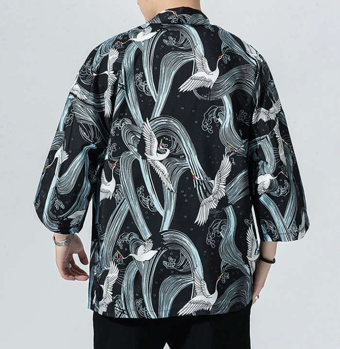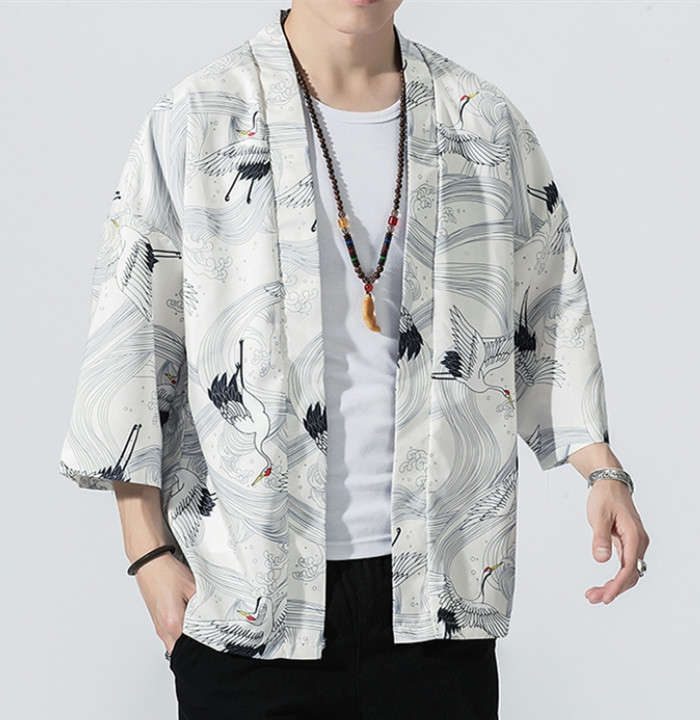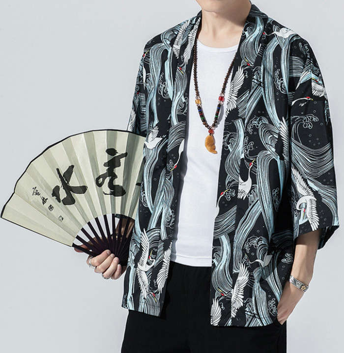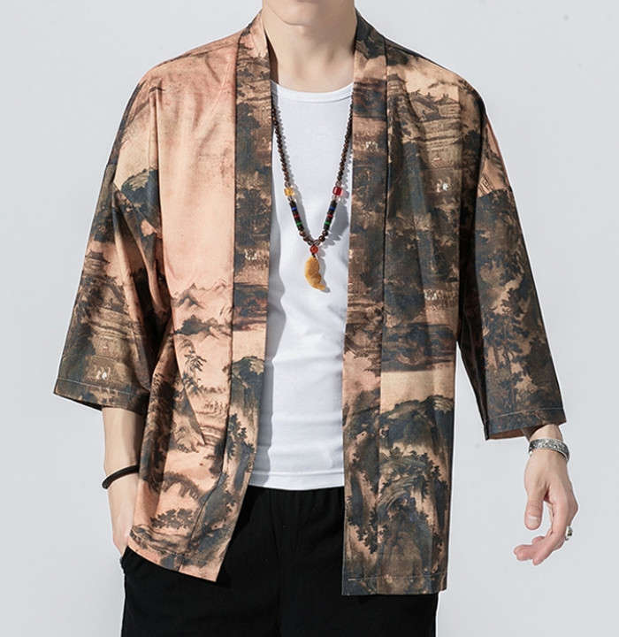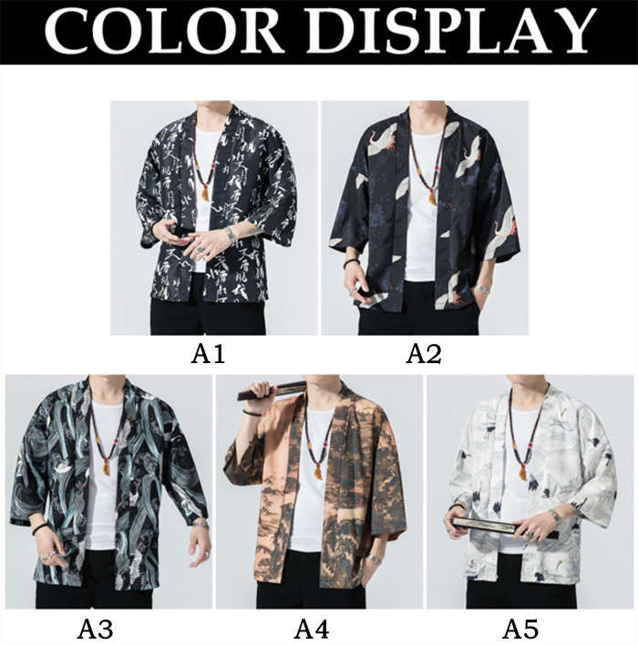 カーディガン 和風 和服 ゆったり 総柄 トップス アウター 春夏服 5styles 黒色 白色メンズファッション 和服 着物