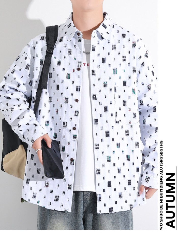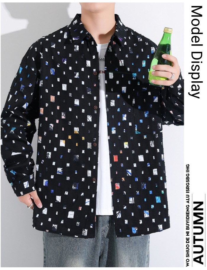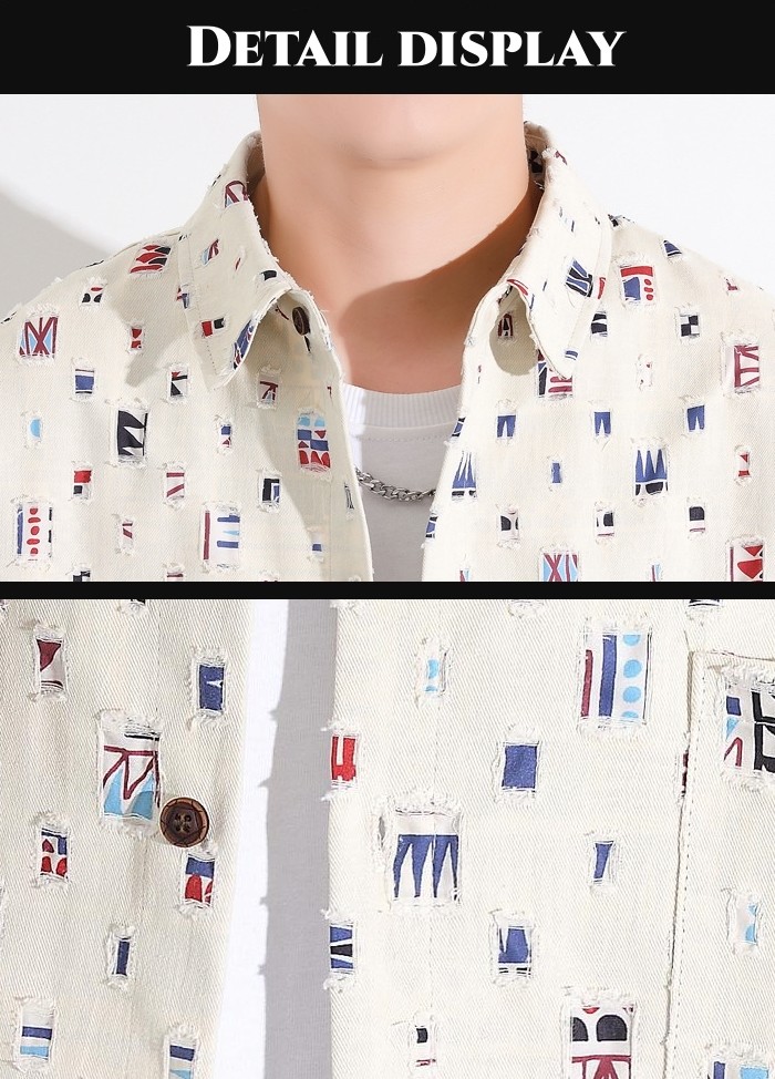 長袖シャツ ショート丈 シャツジャケット カジュアル ライトアウター ダメージ加工 トップス 黒色 白色 4colors