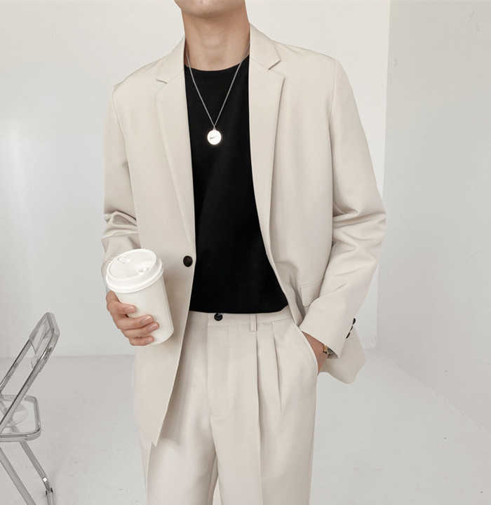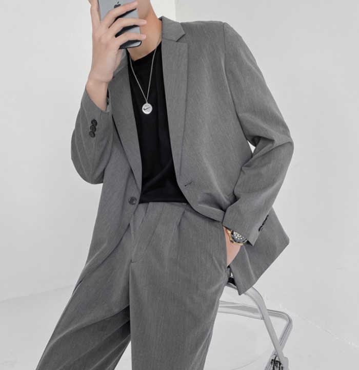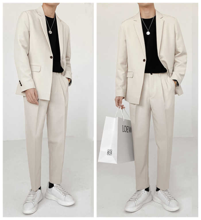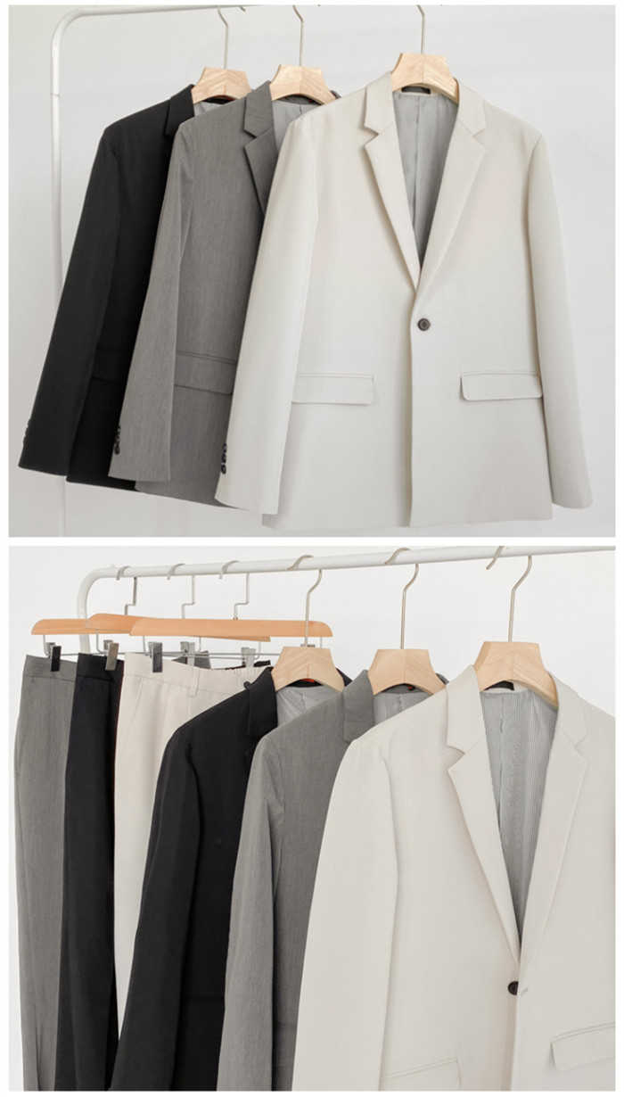2点セットアップ上下 テーラードジャケット スラックス 夏品 男性用 無地 涼しい 3colors 灰色 黒色