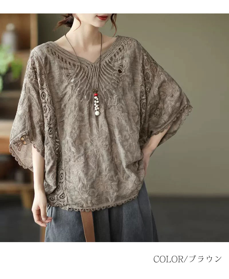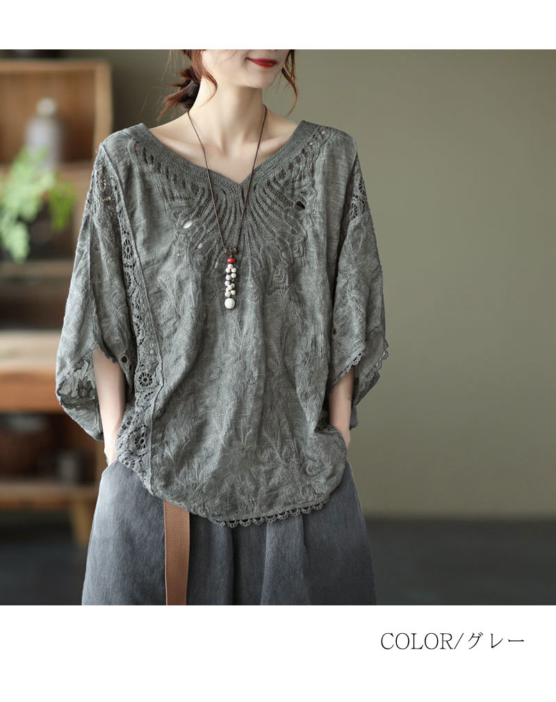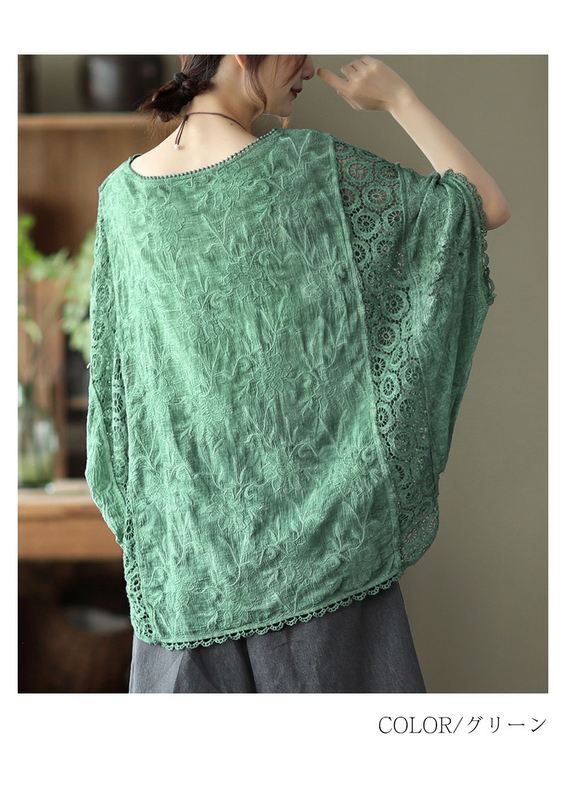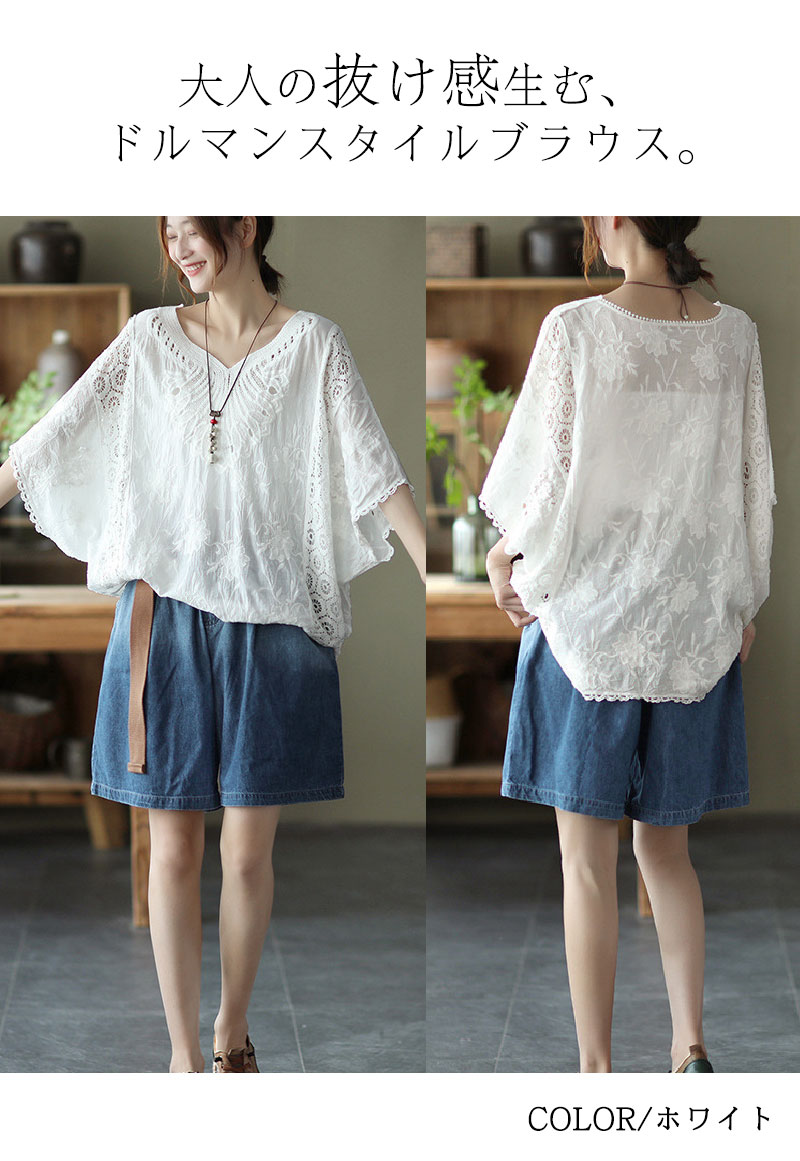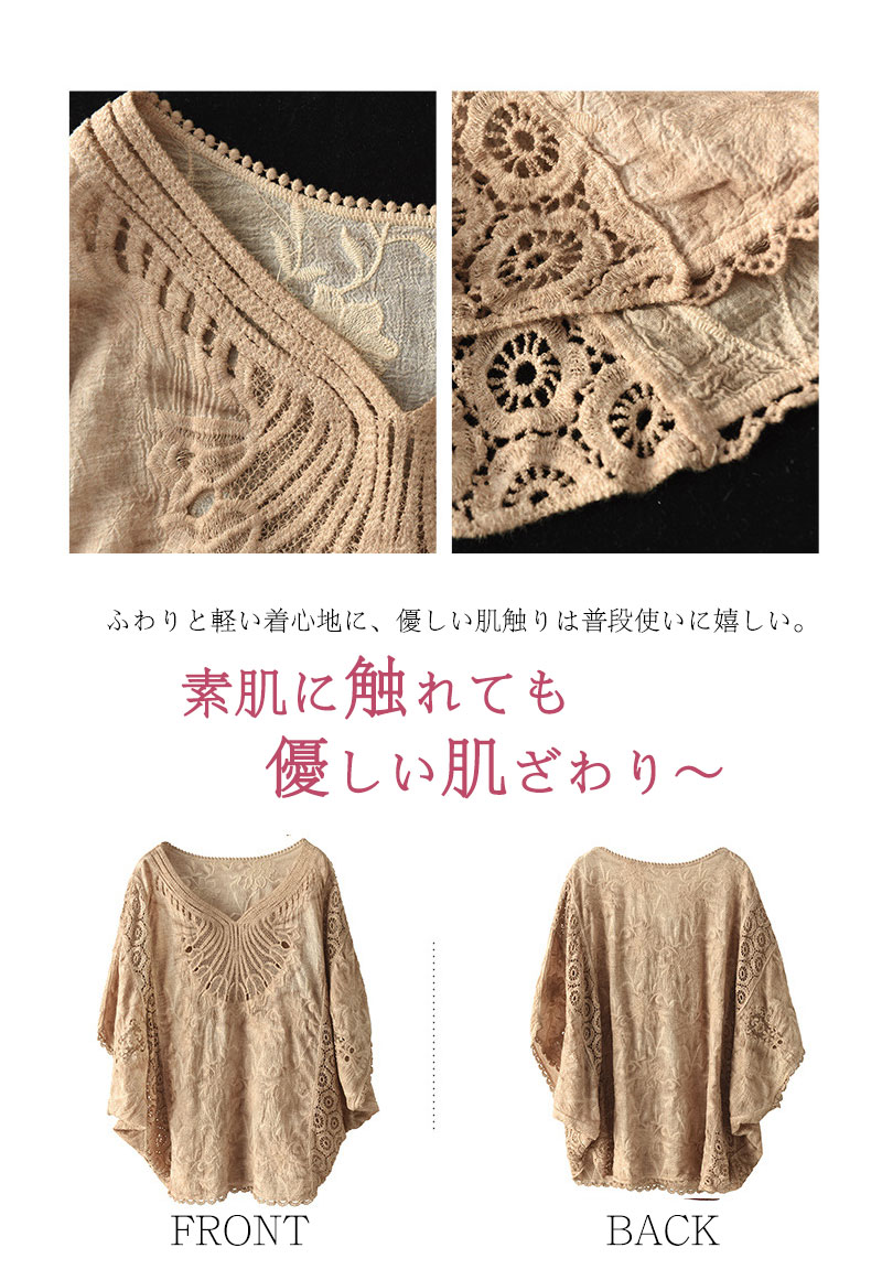 コットン刺繍レースブラウス レース刺繍
