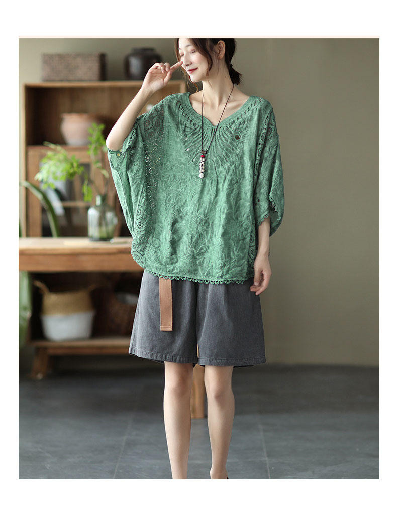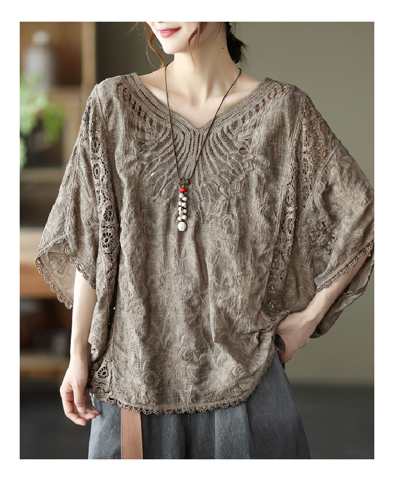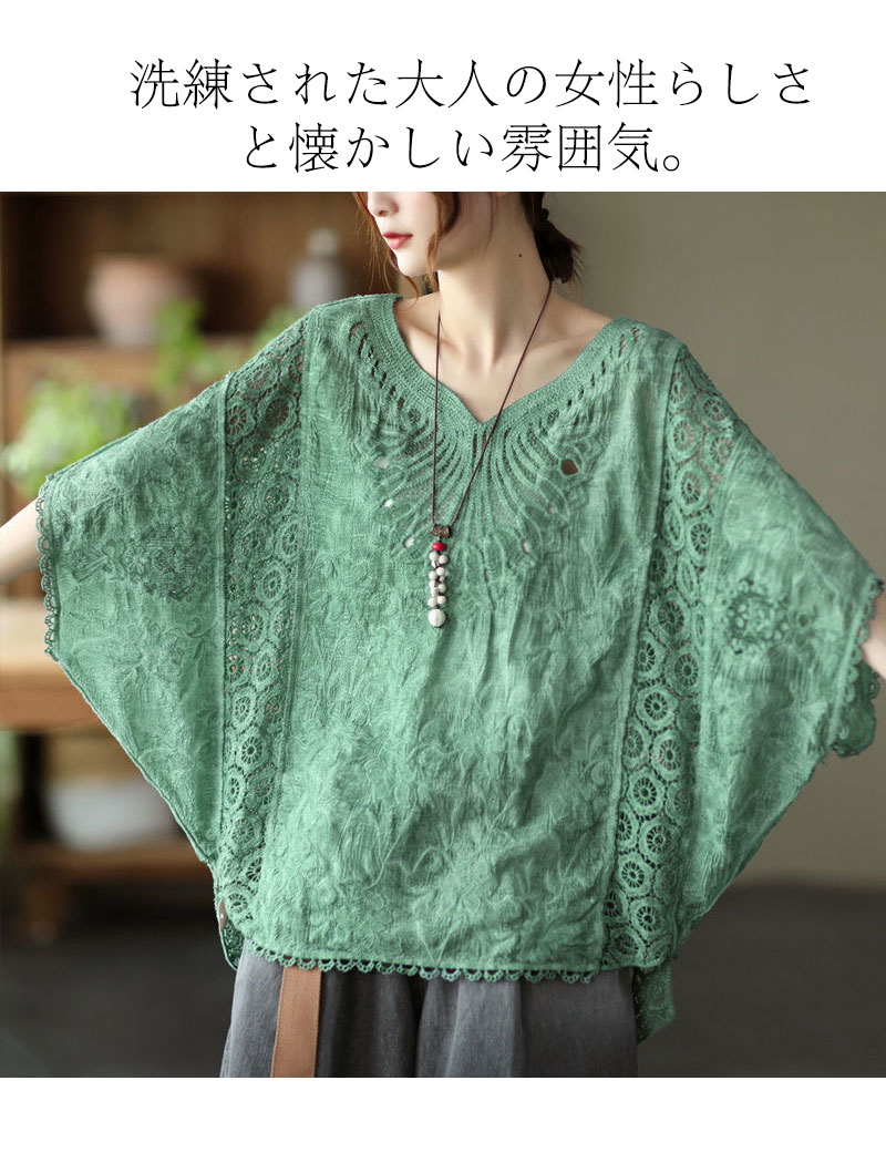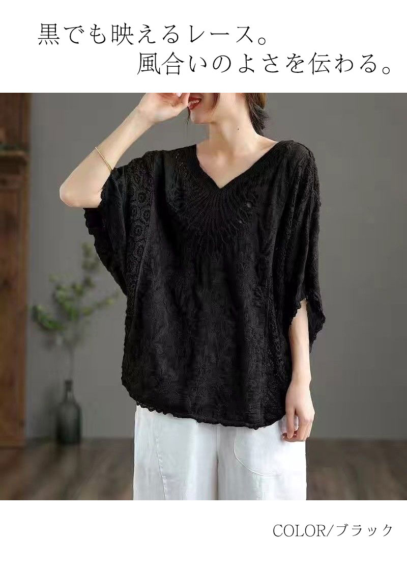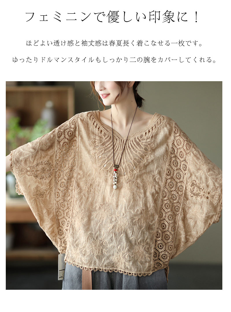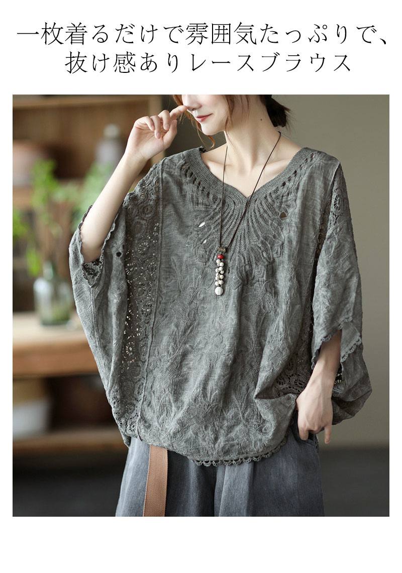 コットン刺繍レースブラウス レース刺繍