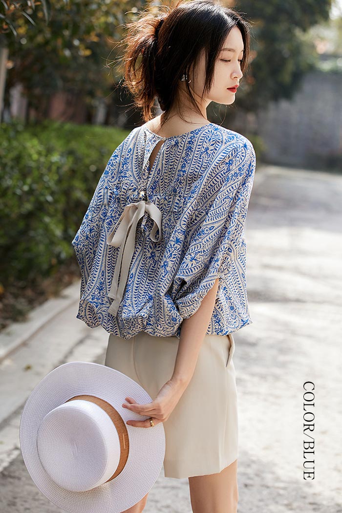 バックリボンづきおしゃれ半袖ドルマンブ
