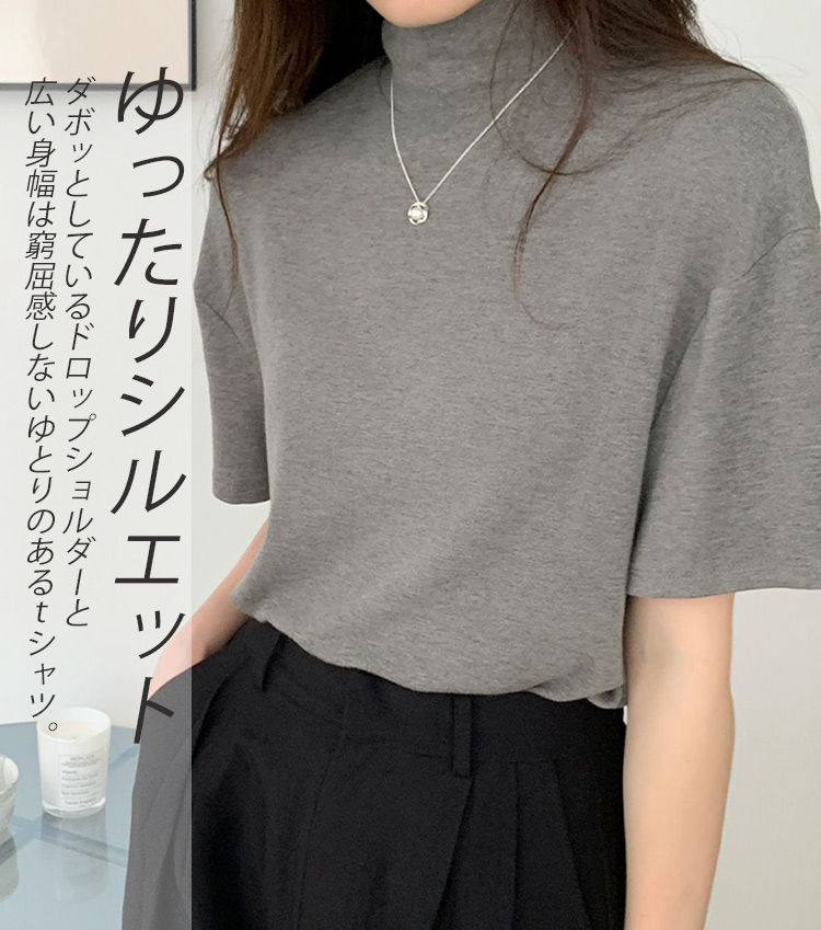 首もとをおしゃれに隠せるハイネック半袖