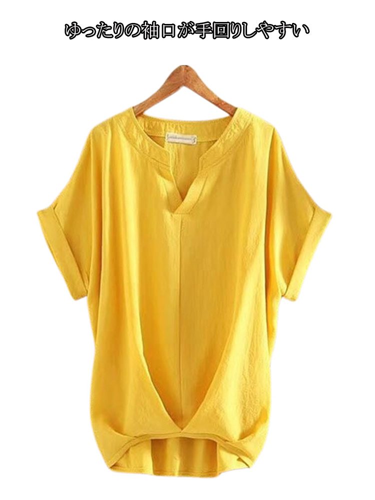 選べる8色&5サイズ Vネック綿麻風ブ