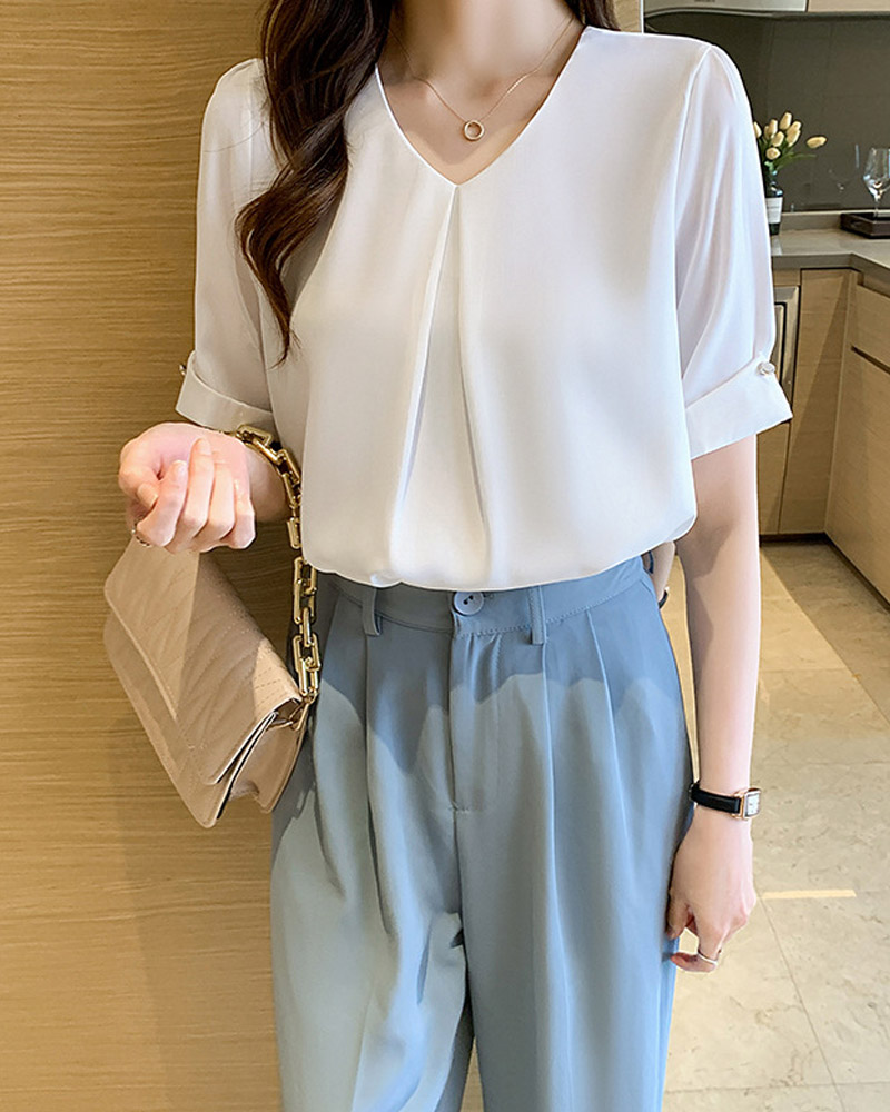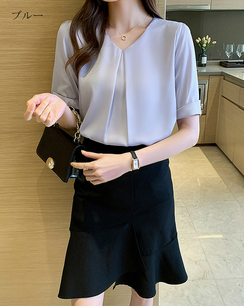 vネックシャツブラウス レディース ブ