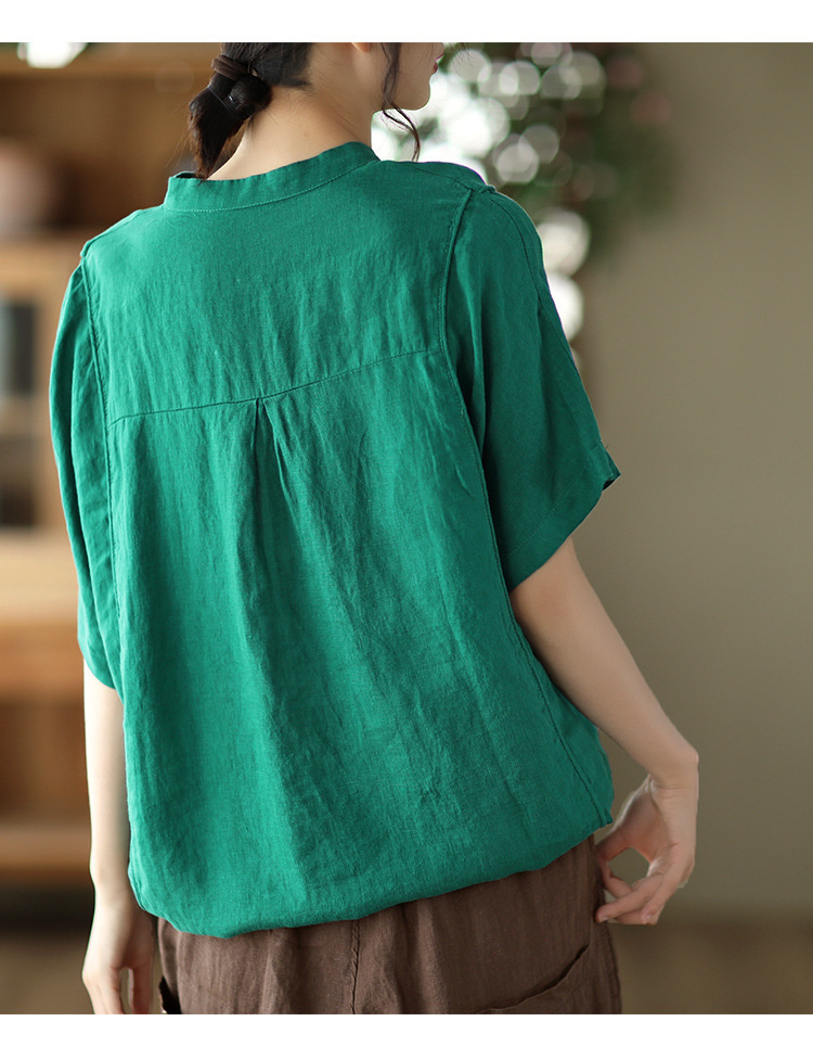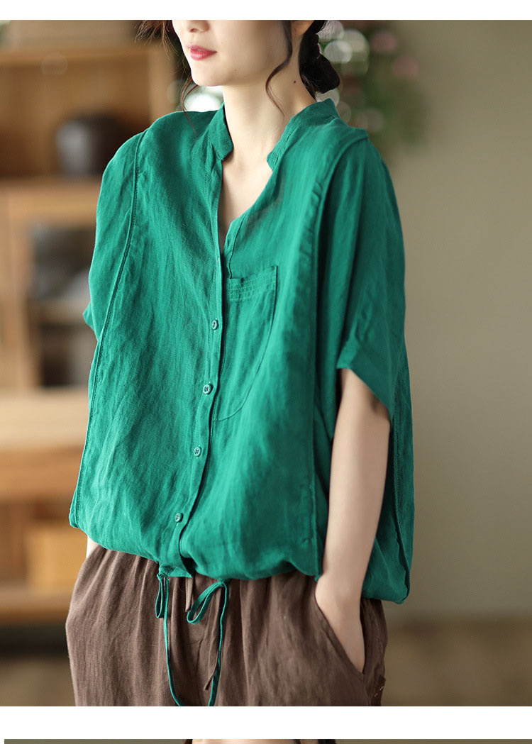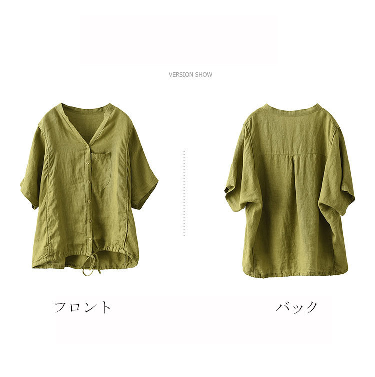 抜け感がある五分袖シャツ 綿麻 裾紐付