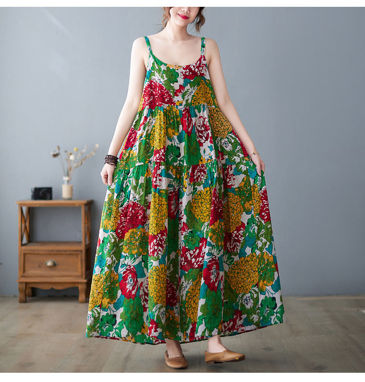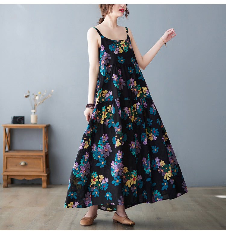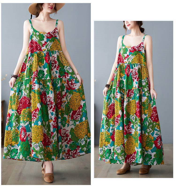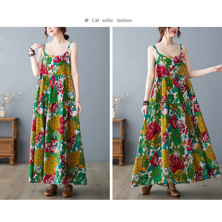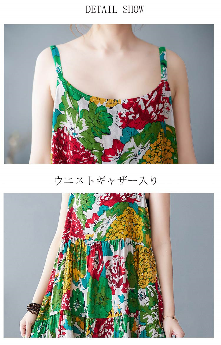 花柄ロング丈キャミワンピース 夏ワンピ