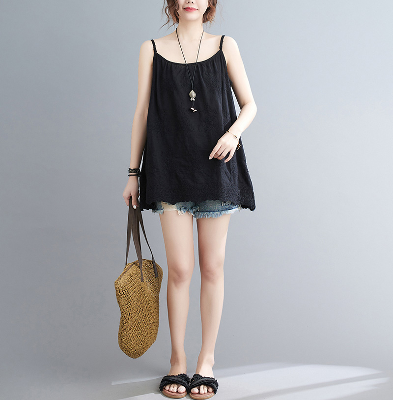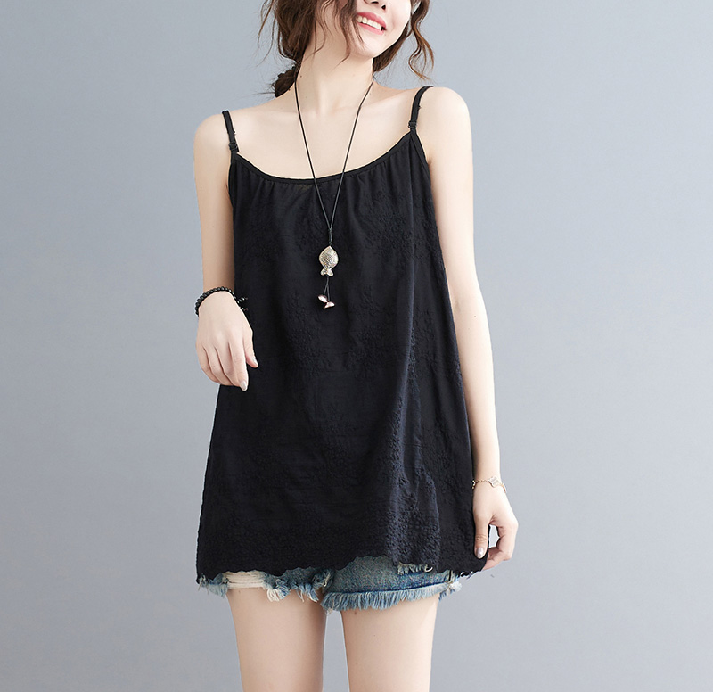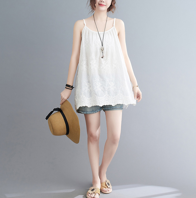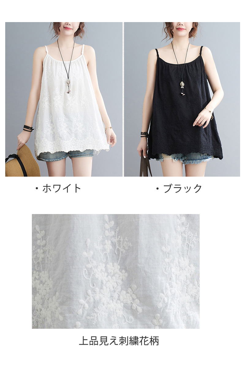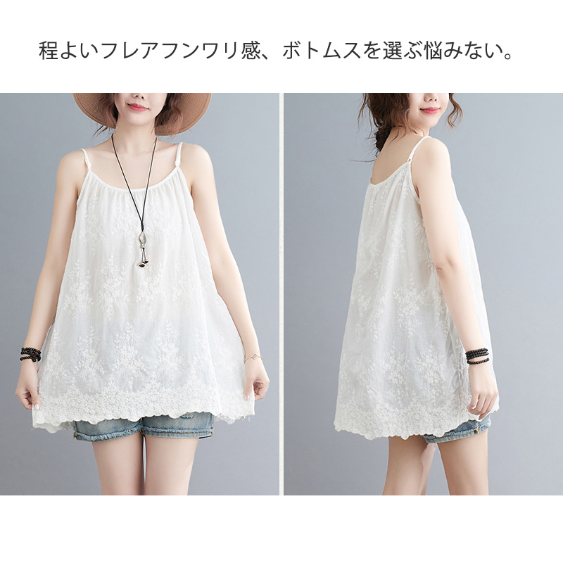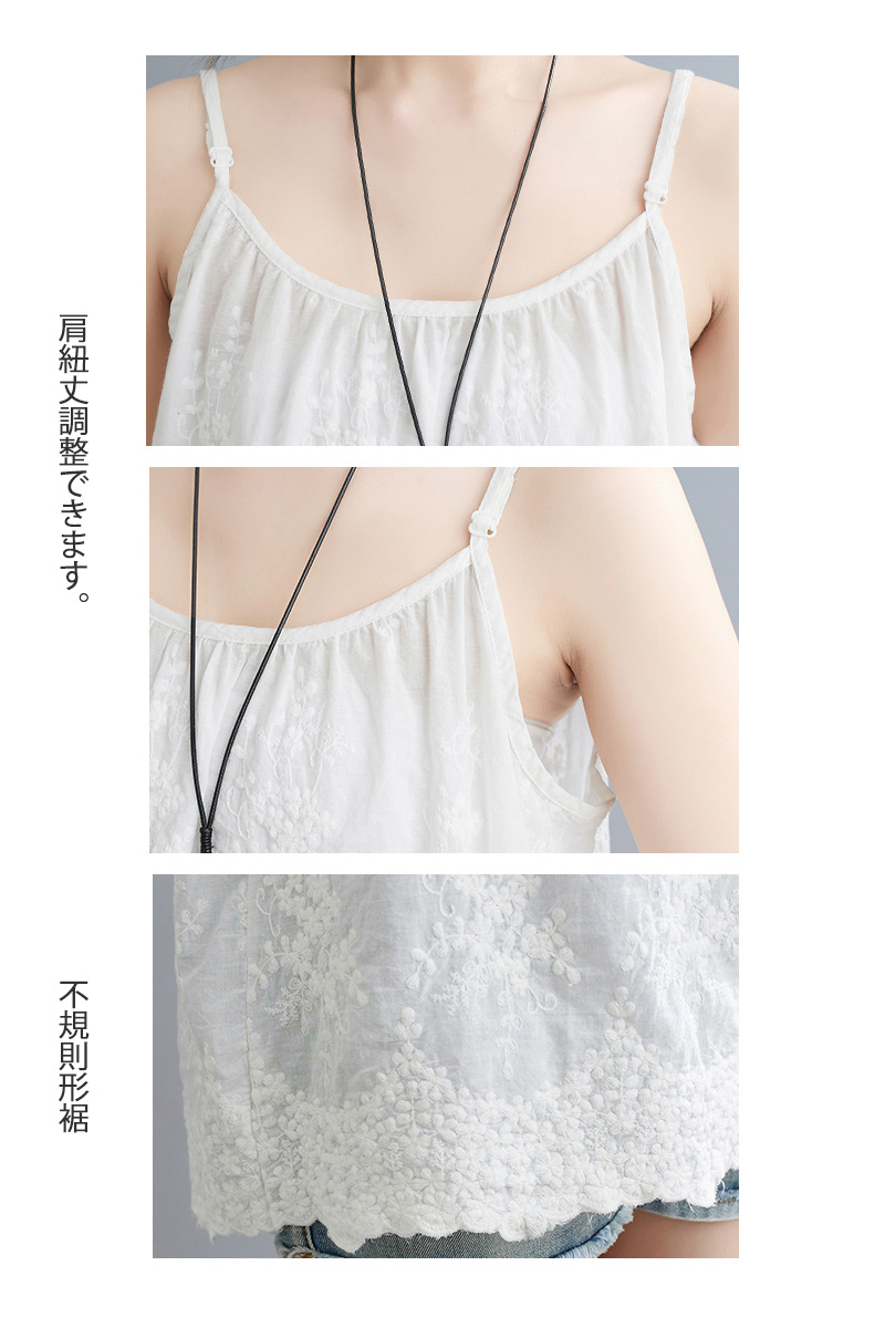 可愛い刺繍づきレースキャミソール 綿