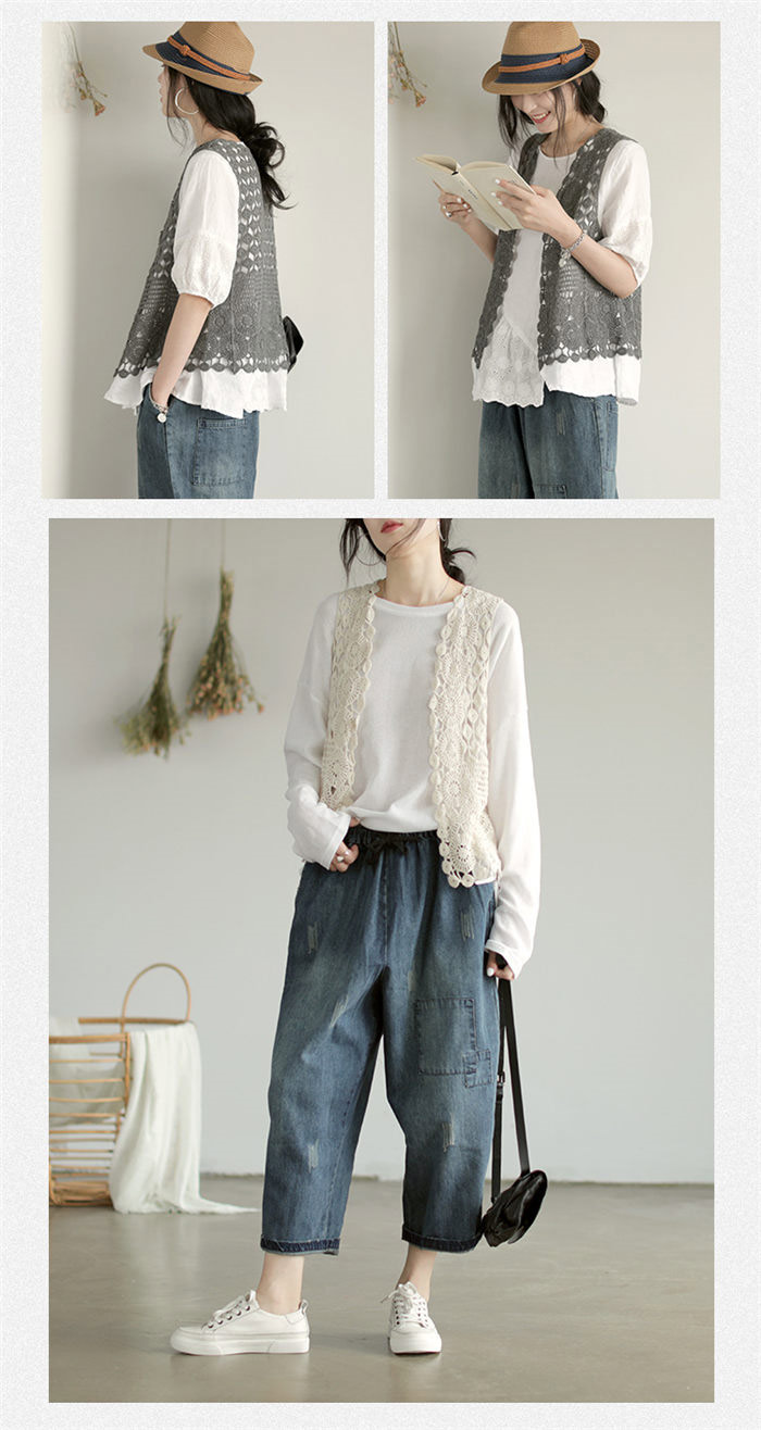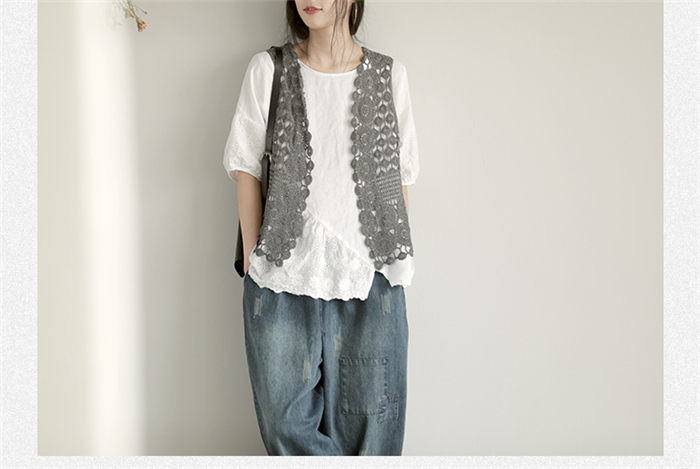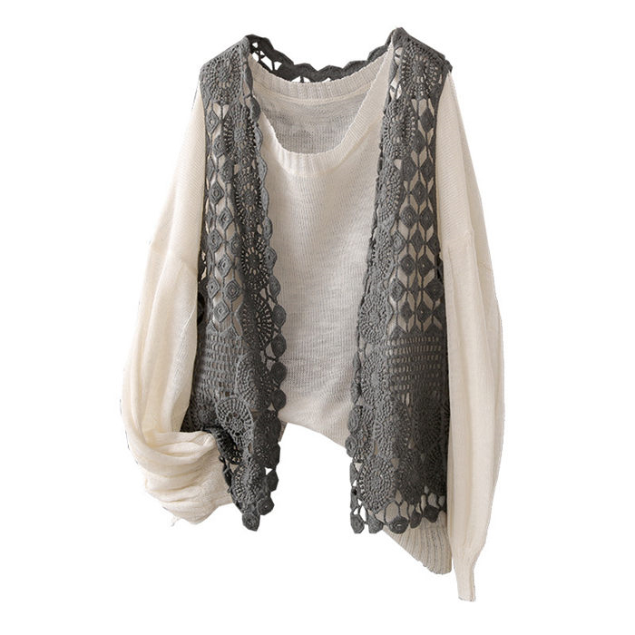 おしゃれレースノースリーショート丈ベス