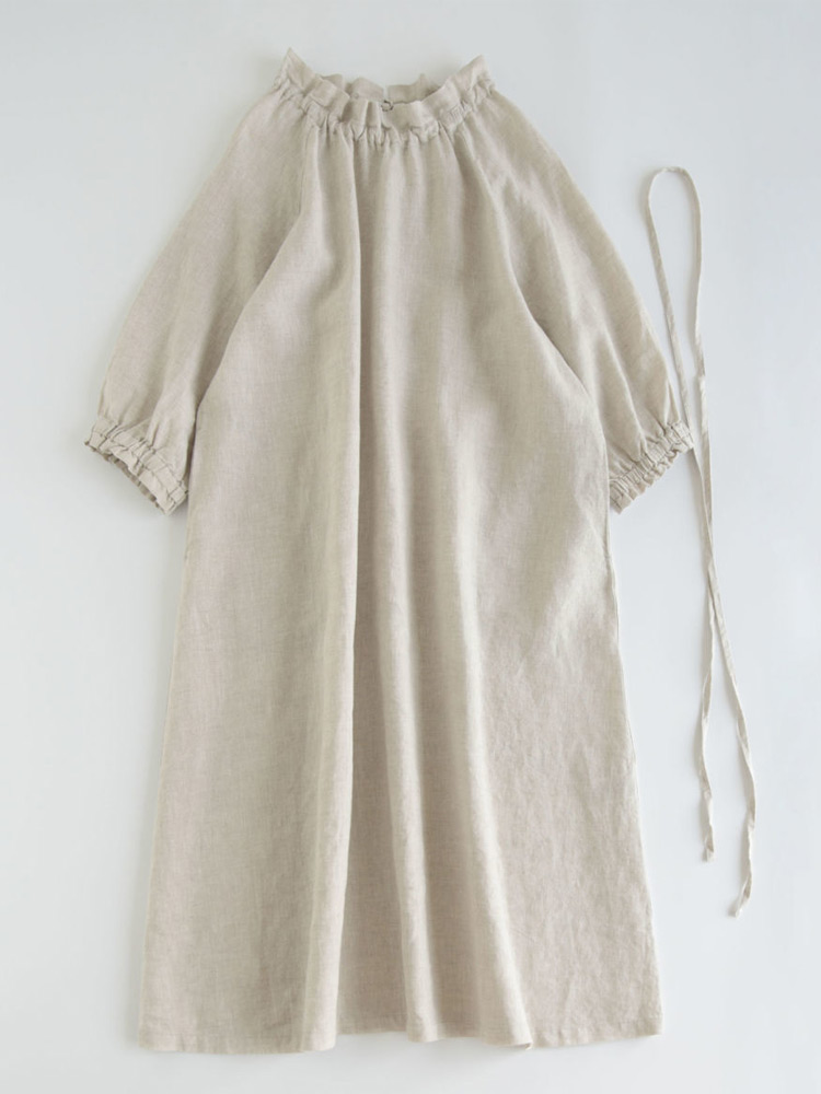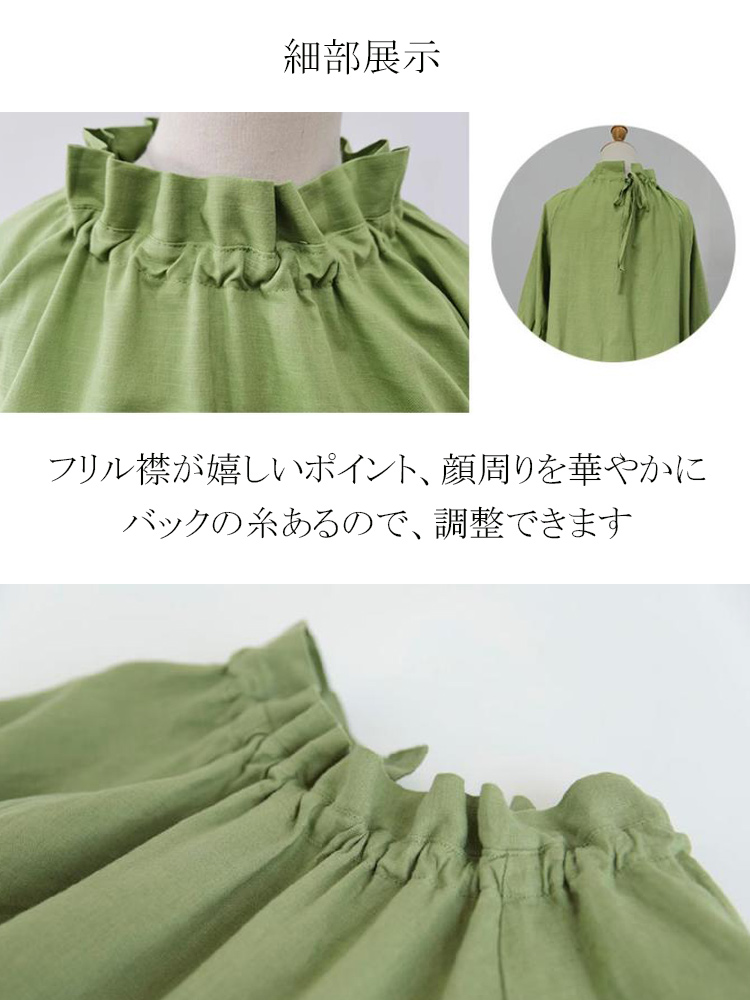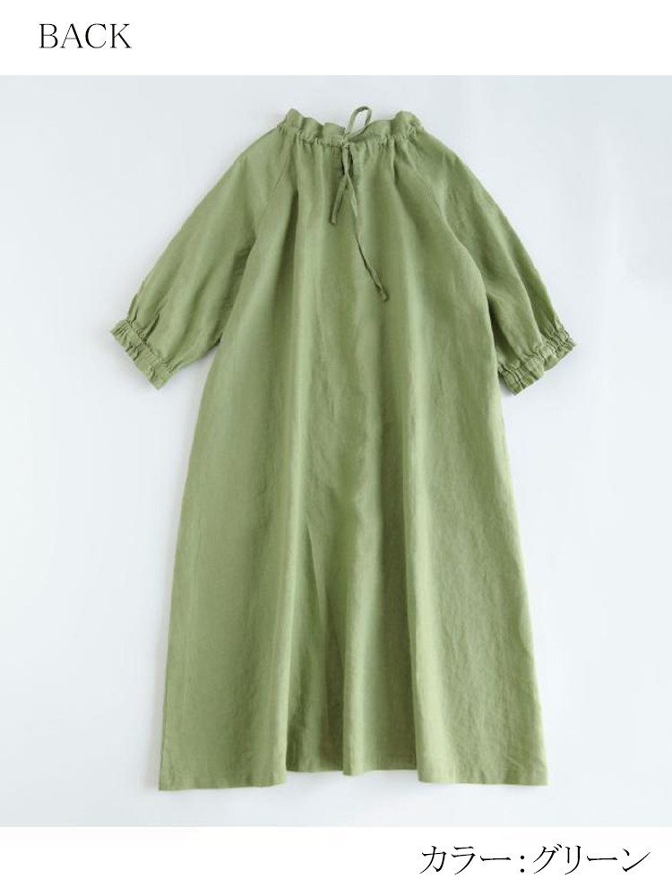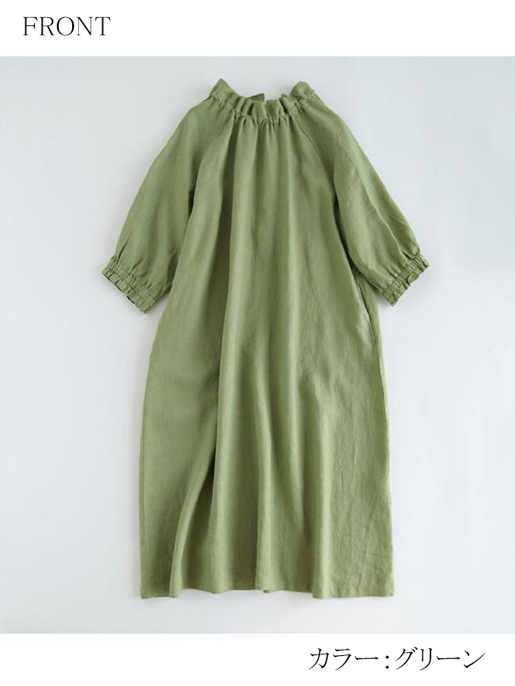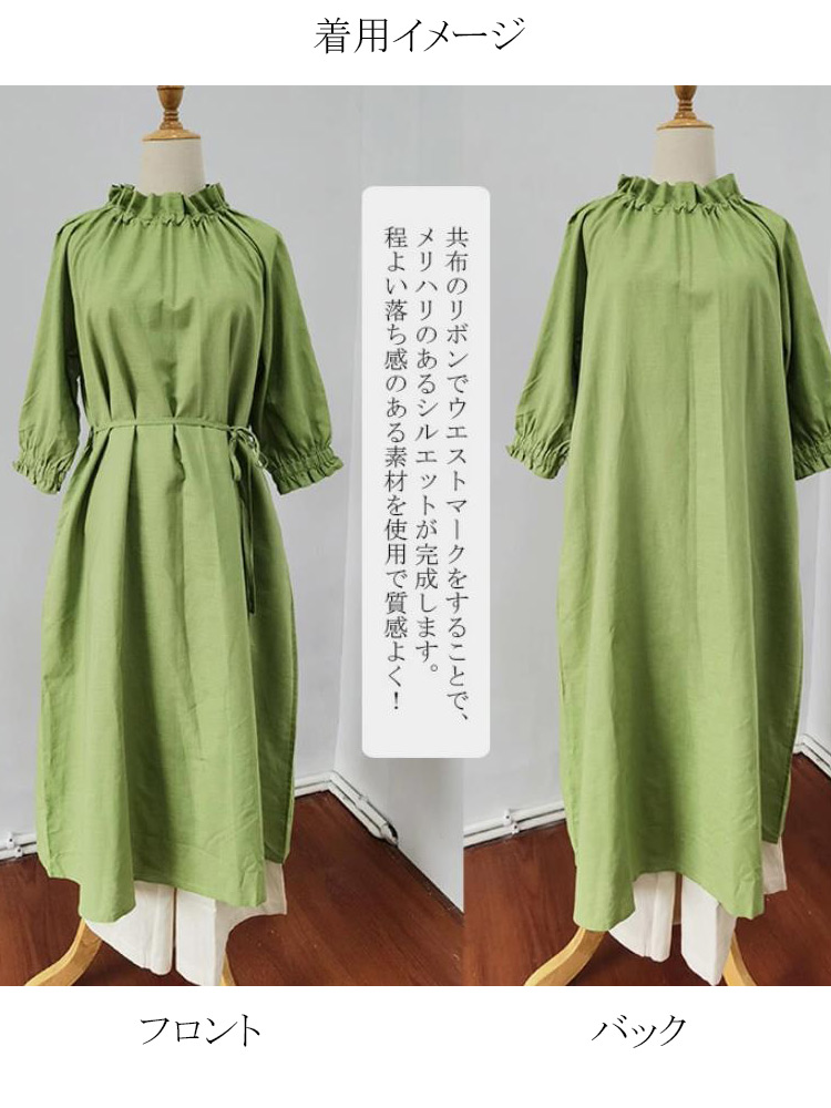 フリル襟 ウエストリボン ロングワンピ