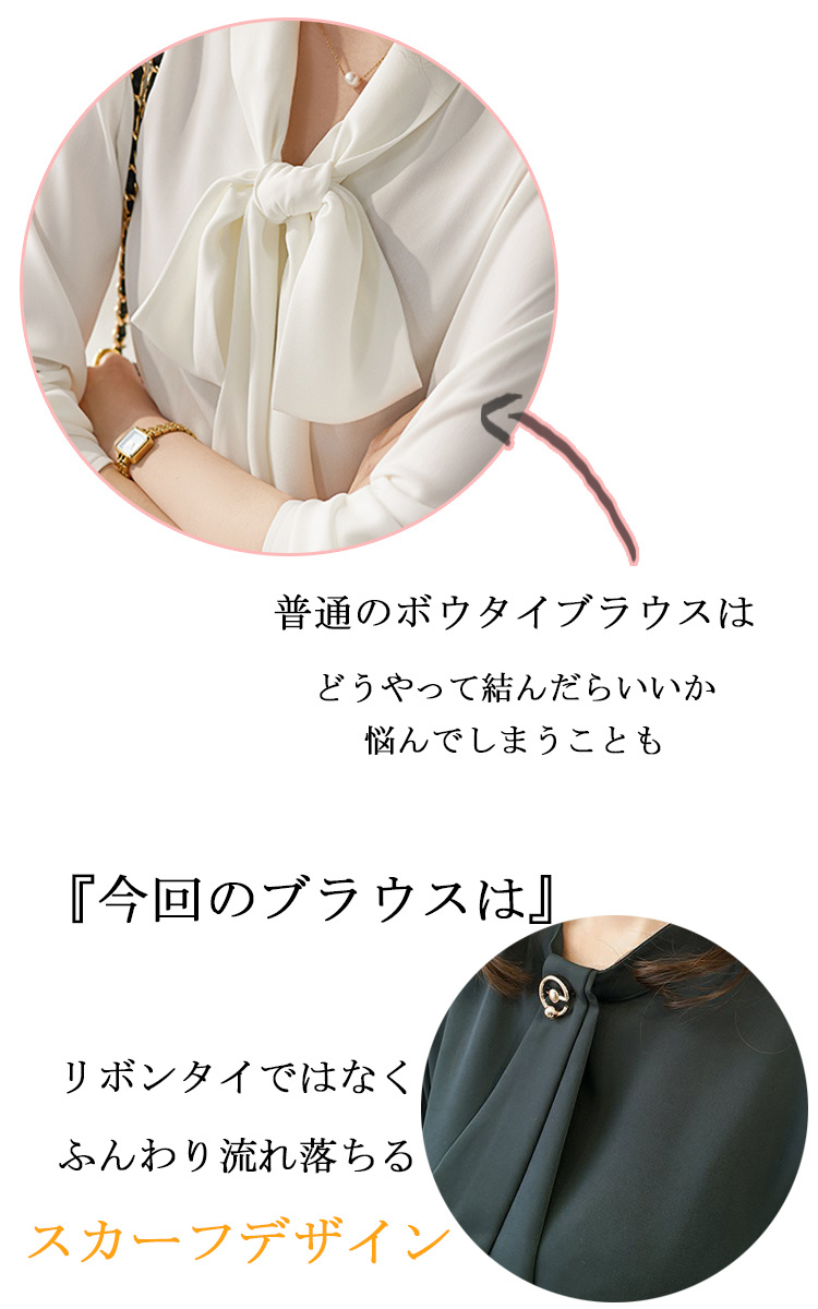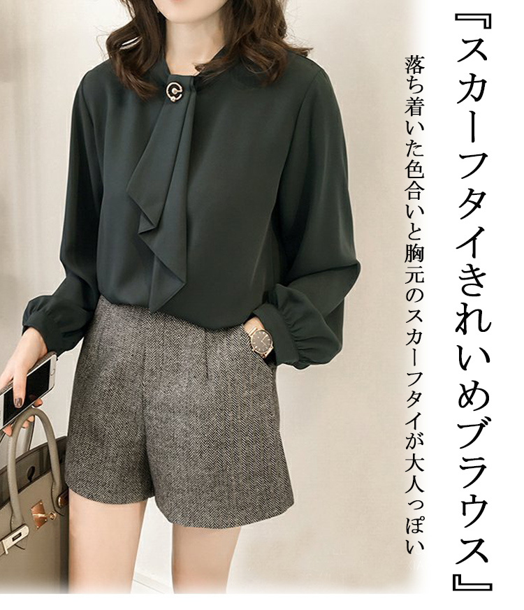 ボリューム感 胸元飾り スカーフブラウ
