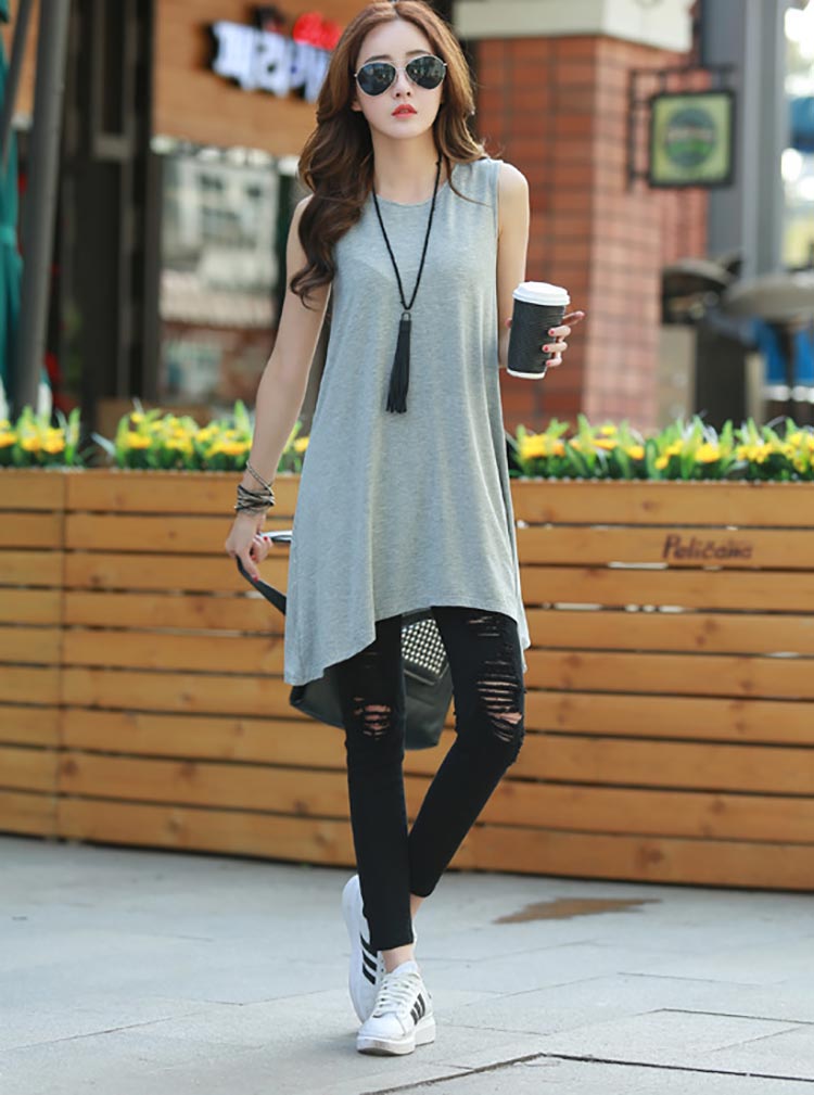 タンクトップレディースTシャツノースリーブUネックロゴプリント
