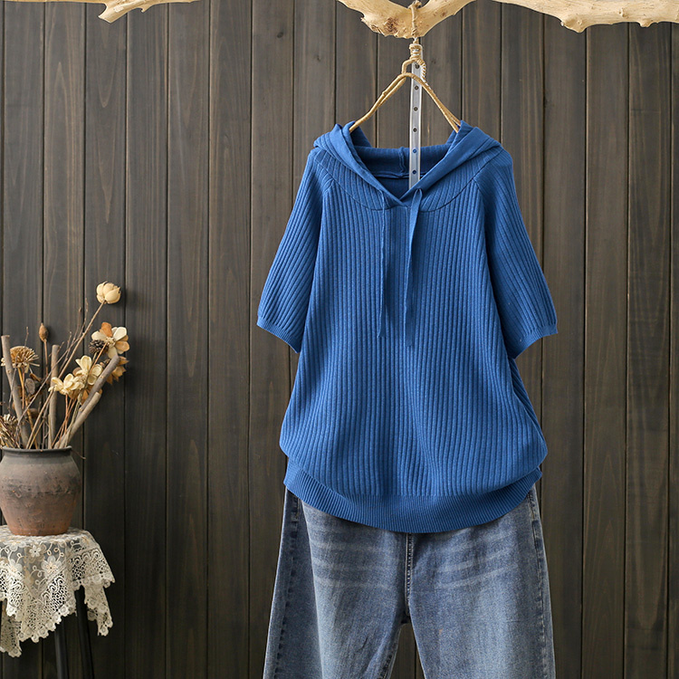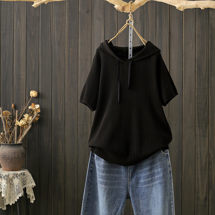 涼しい半袖パーカー リブ カットソー