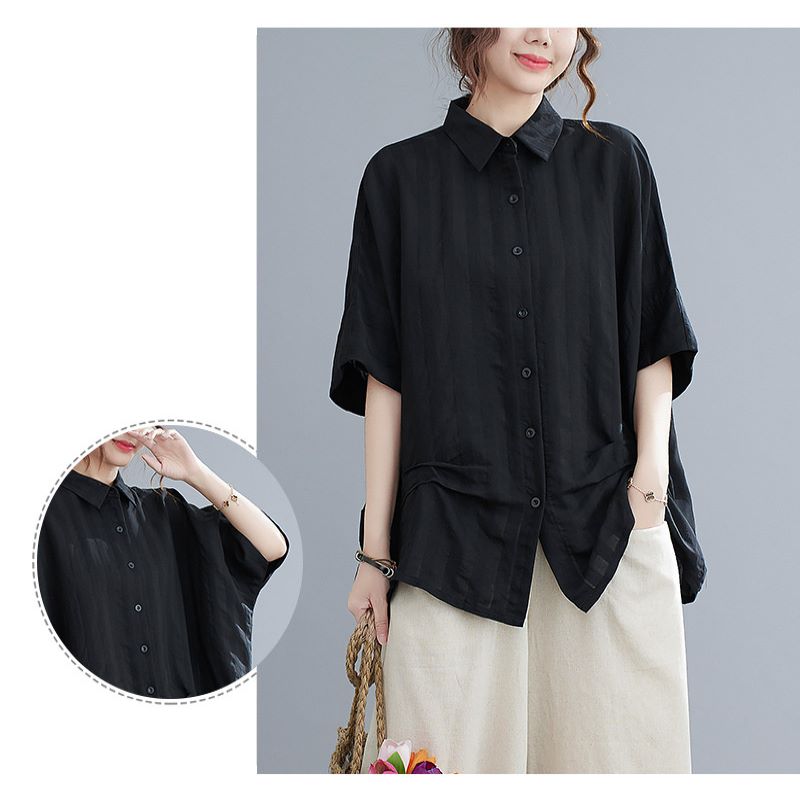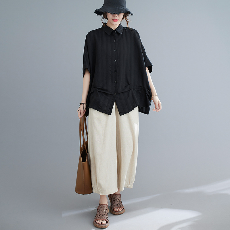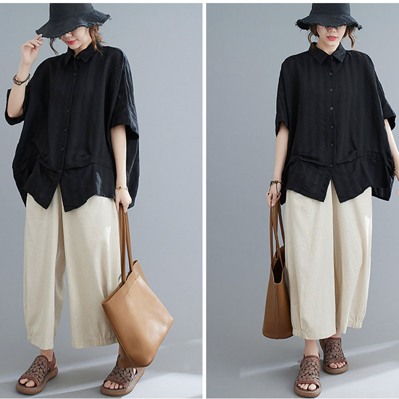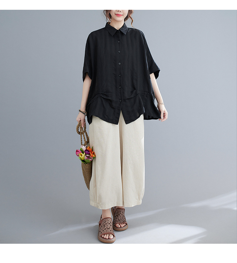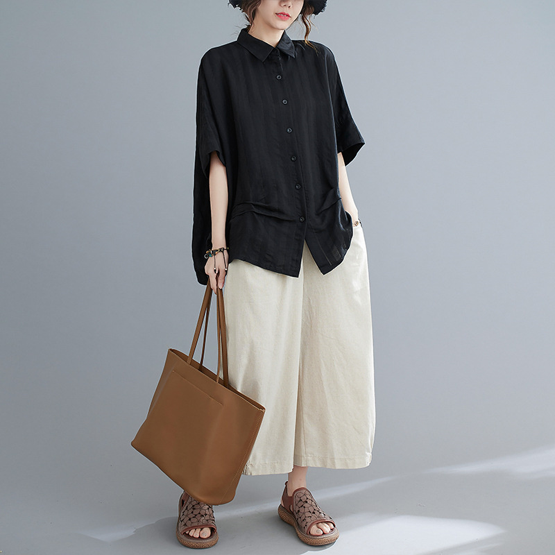 大人のこなれ感漂うドルマンシャツ ブラ