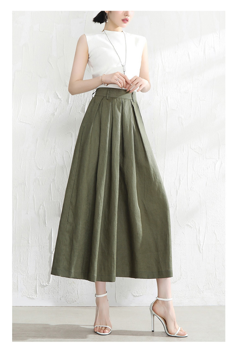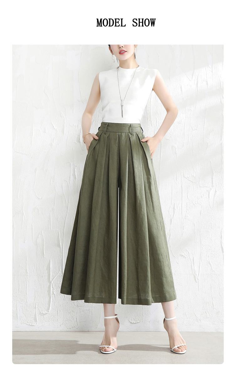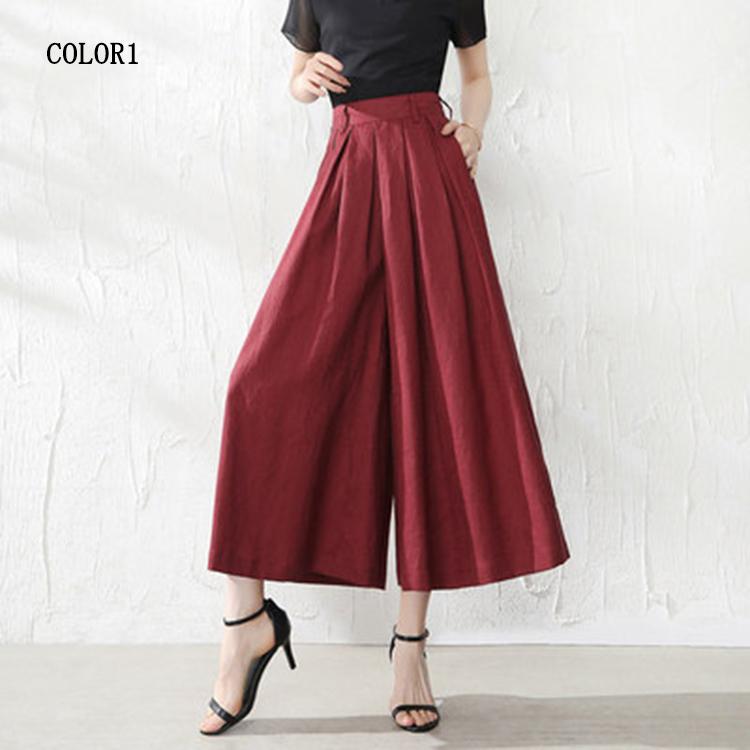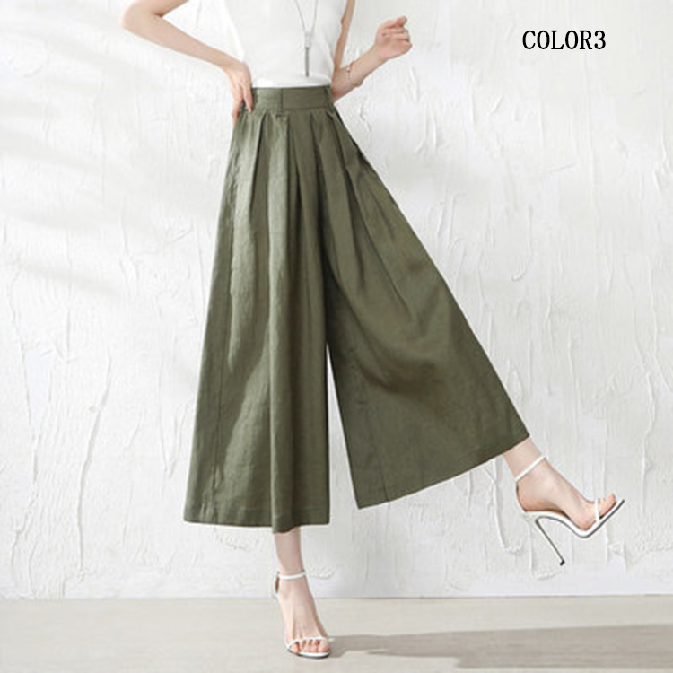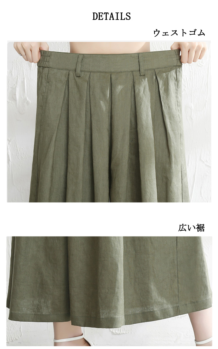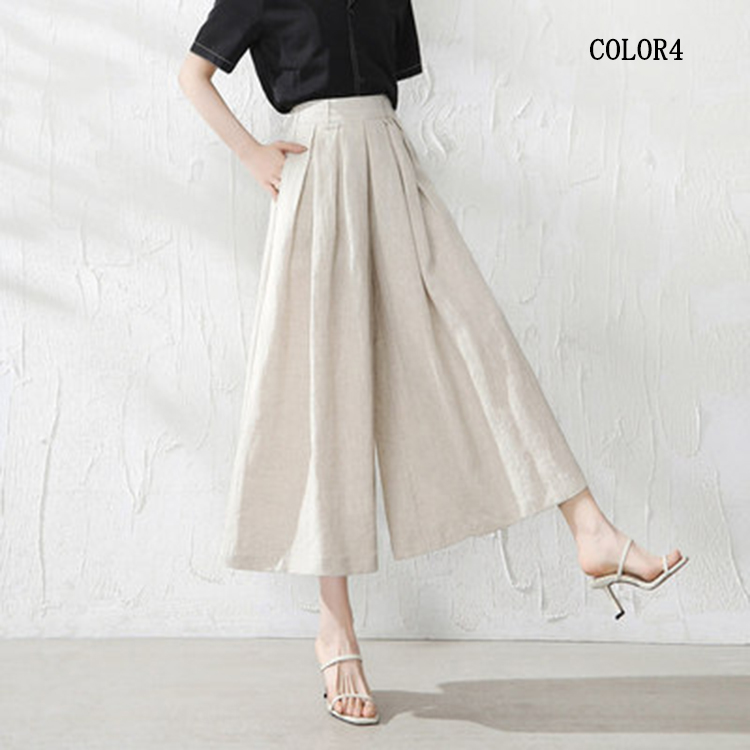 綿麻パンツ ワイドパンツ クロップド