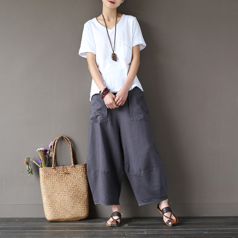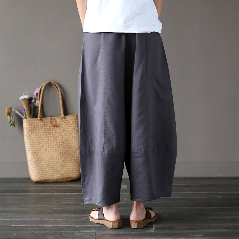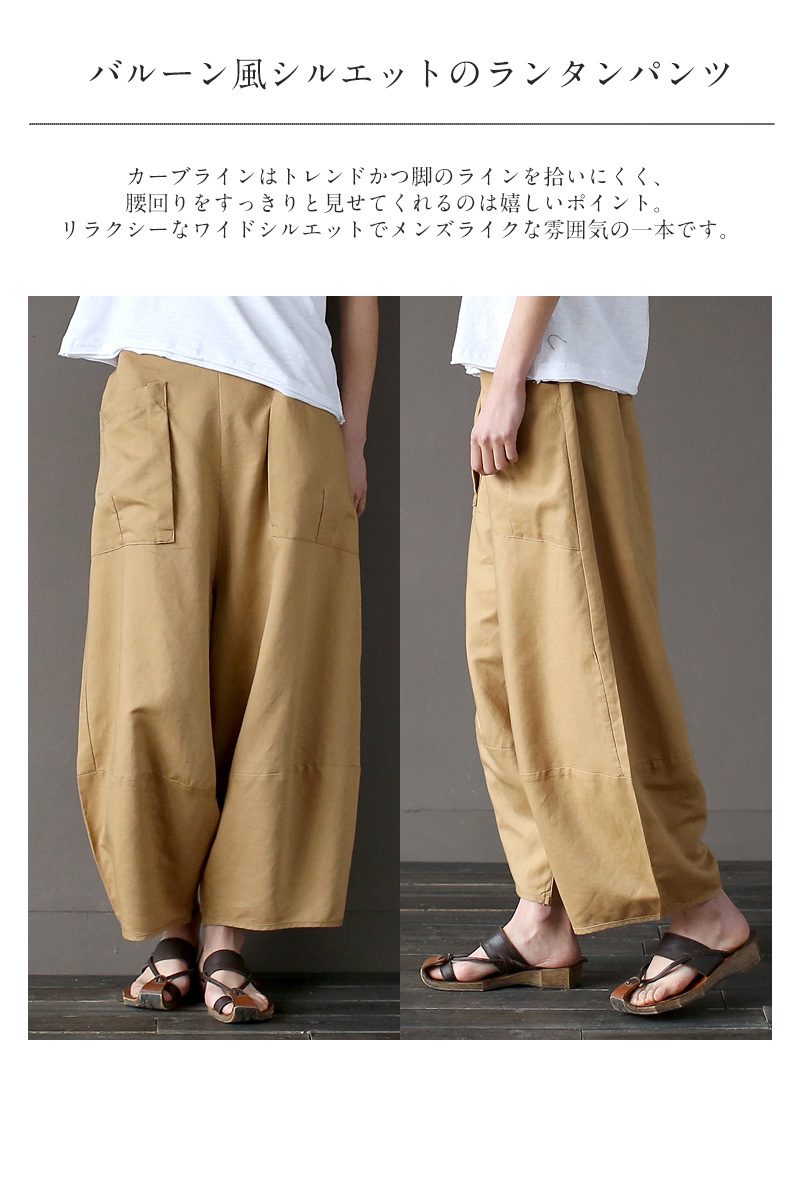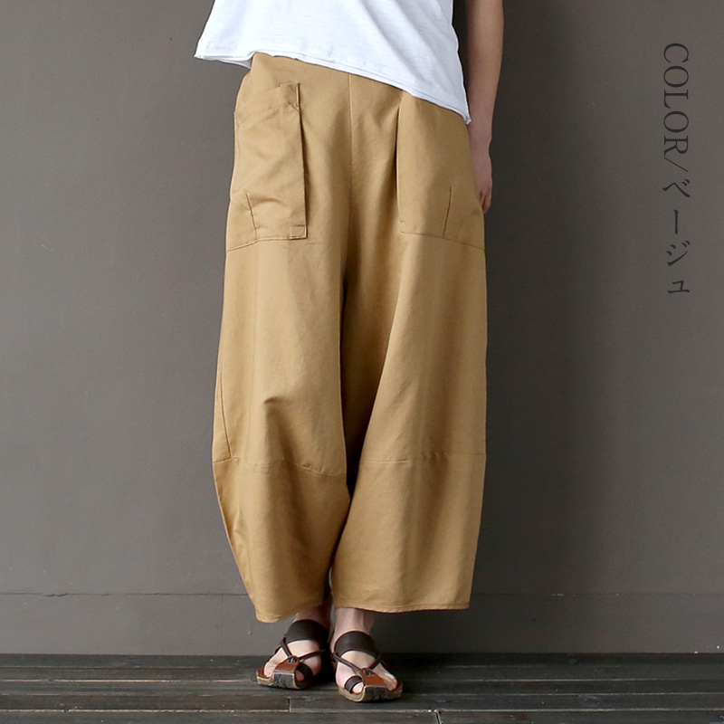 夏用薄手バルーンパンツ 麻混パンツ リ
